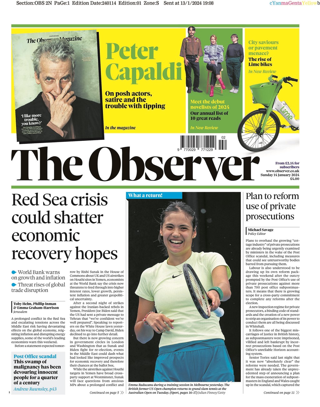 Sunday Times Front Page 14th of January 2024