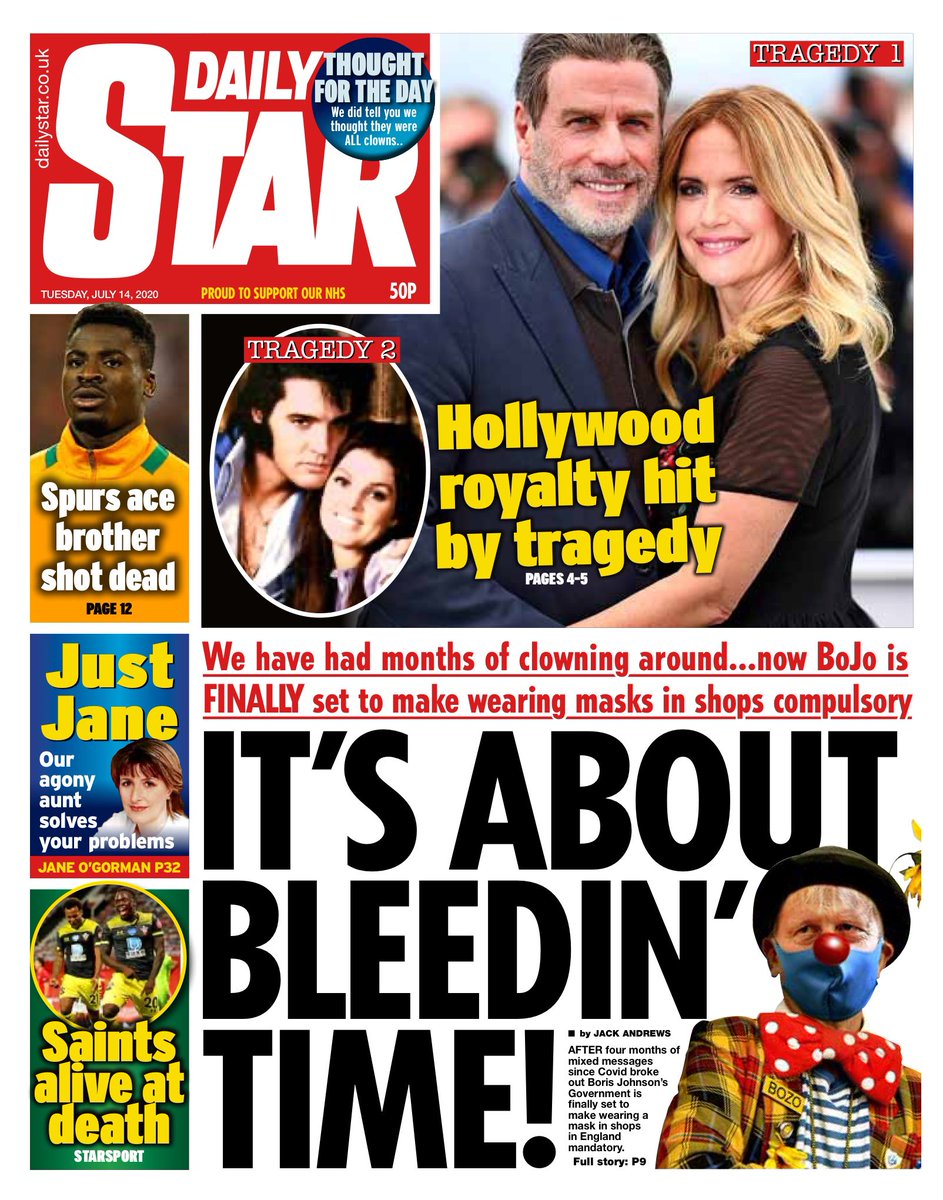It’s About Bleedin’ Time – that’s the Daily Star’s take on the government’s decision to make face coverings compulsory for shoppers in England.