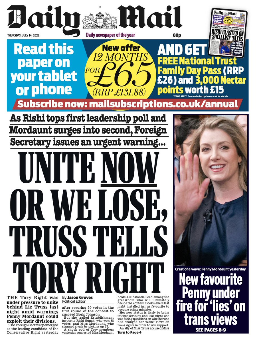 According to the Mail, the Conservative right is rallying around Liz Truss for the leadership.