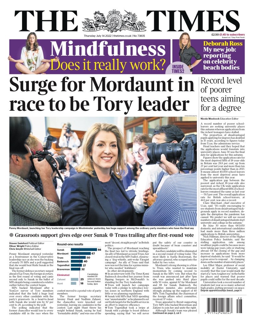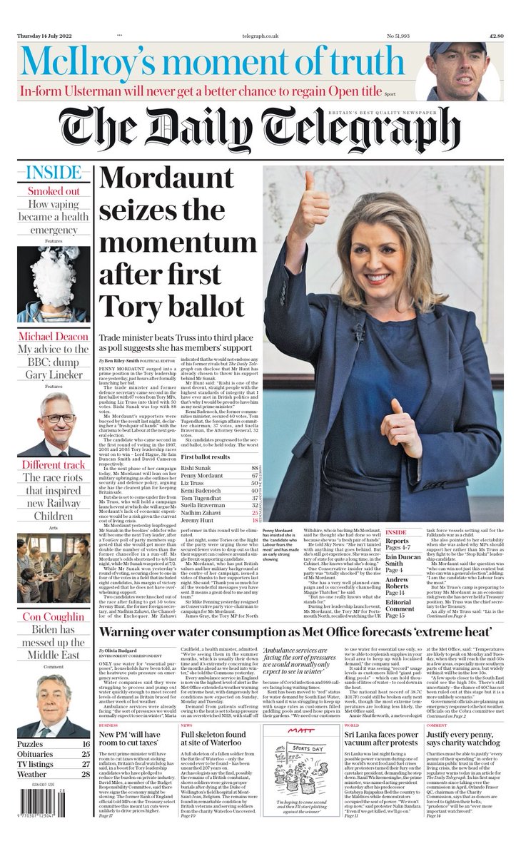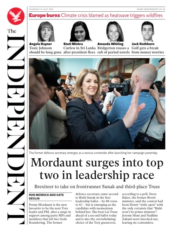 The Telegraph reports that Penny Mordaunt’s leadership bid is gaining “momentum.”