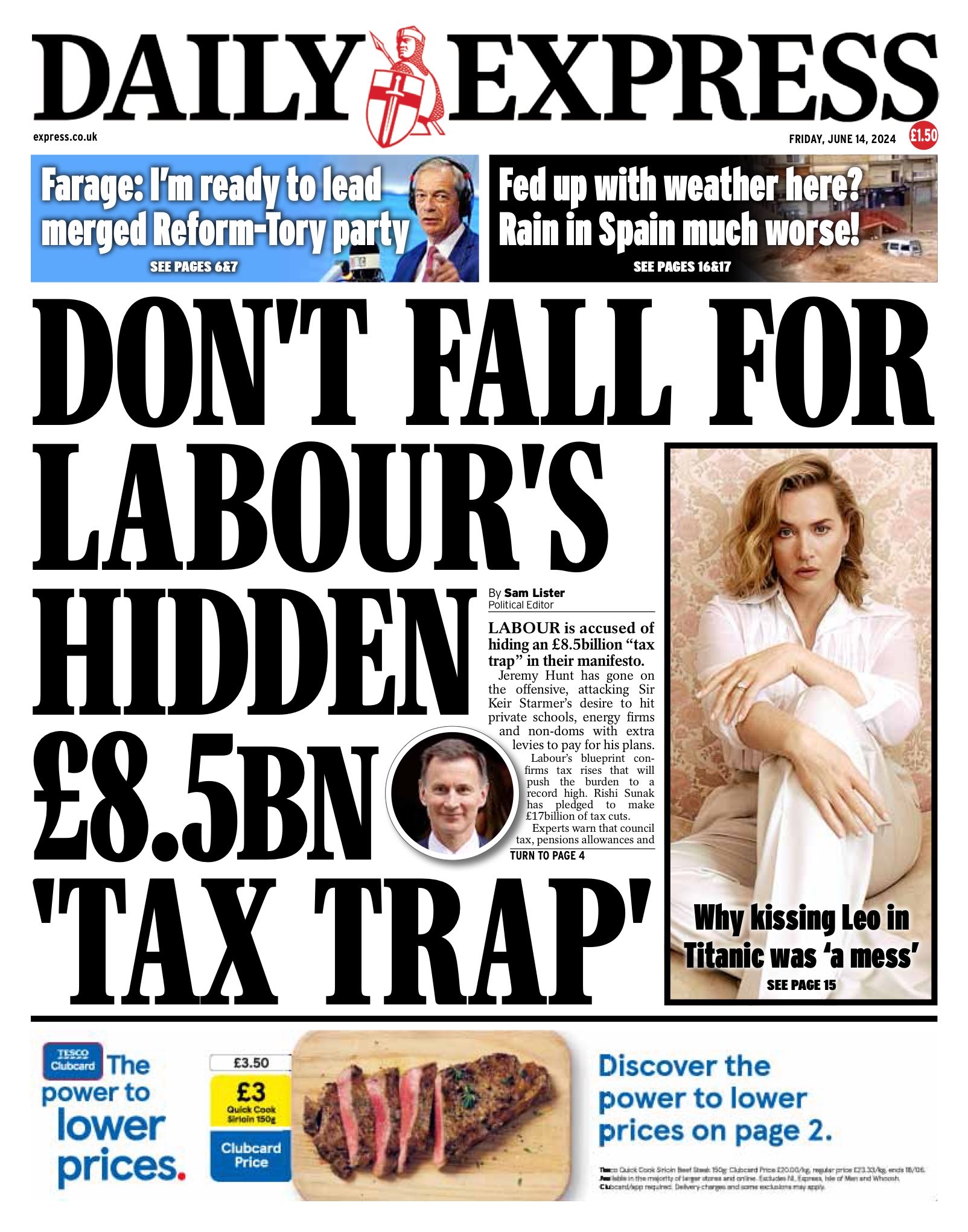Labour is accused of hiding an £8.5 billion tax trap in their manifesto, which Jeremy Hunt claims includes extra levies on private schools, energy firms, and non-doms.