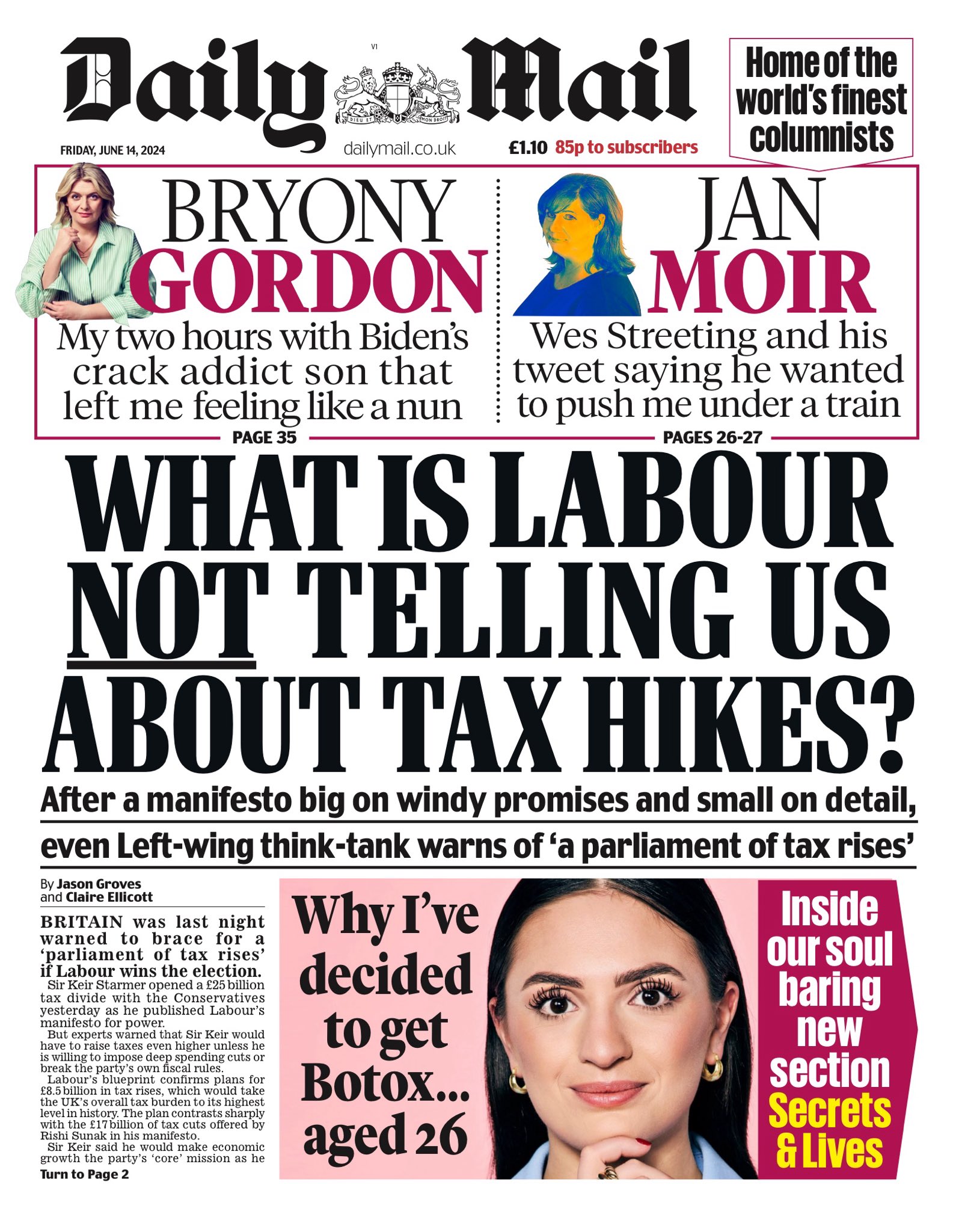 Britain has been warned to brace for significant tax increases if Labour wins the election, as experts indicate that Sir Keir Starmer’s plans would result in £25 billion in tax hikes to manage the country’s spending commitments.