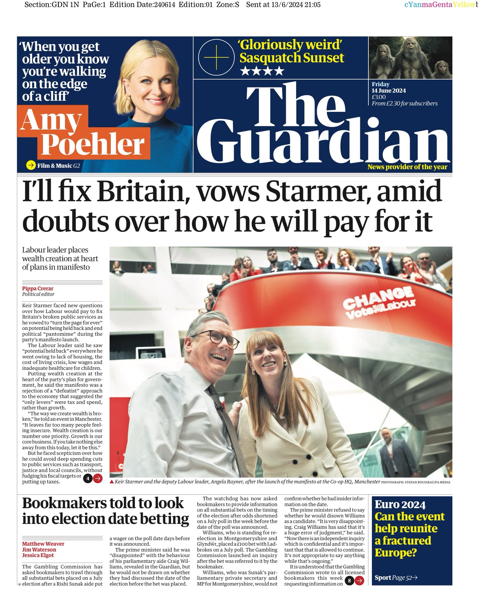 The Daily Mirror highlights Sir Keir Starmer’s pledge to inspire hope through the Labour manifesto.