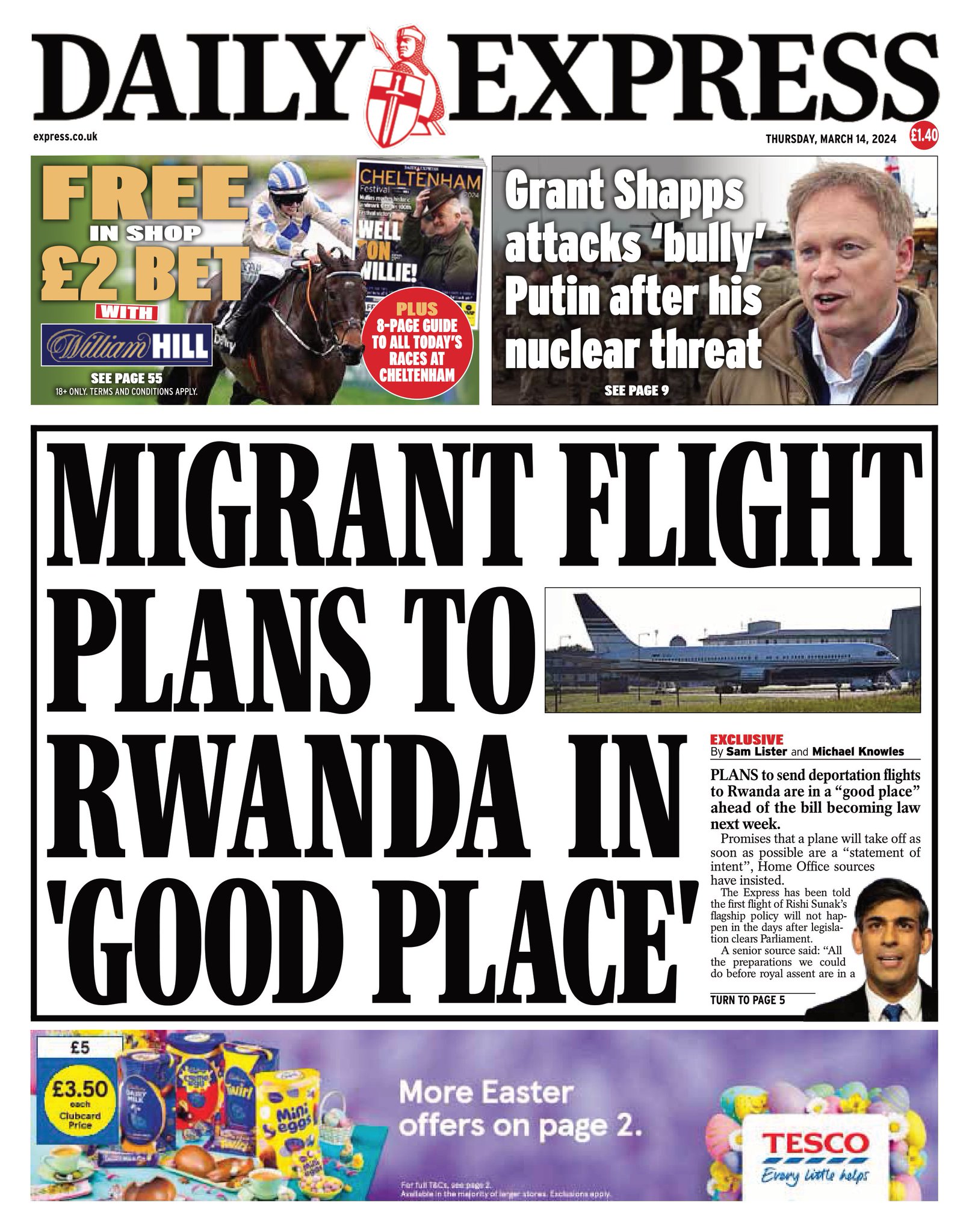 The Daily Express reveals progress in plans for deportation flights to Rwanda.