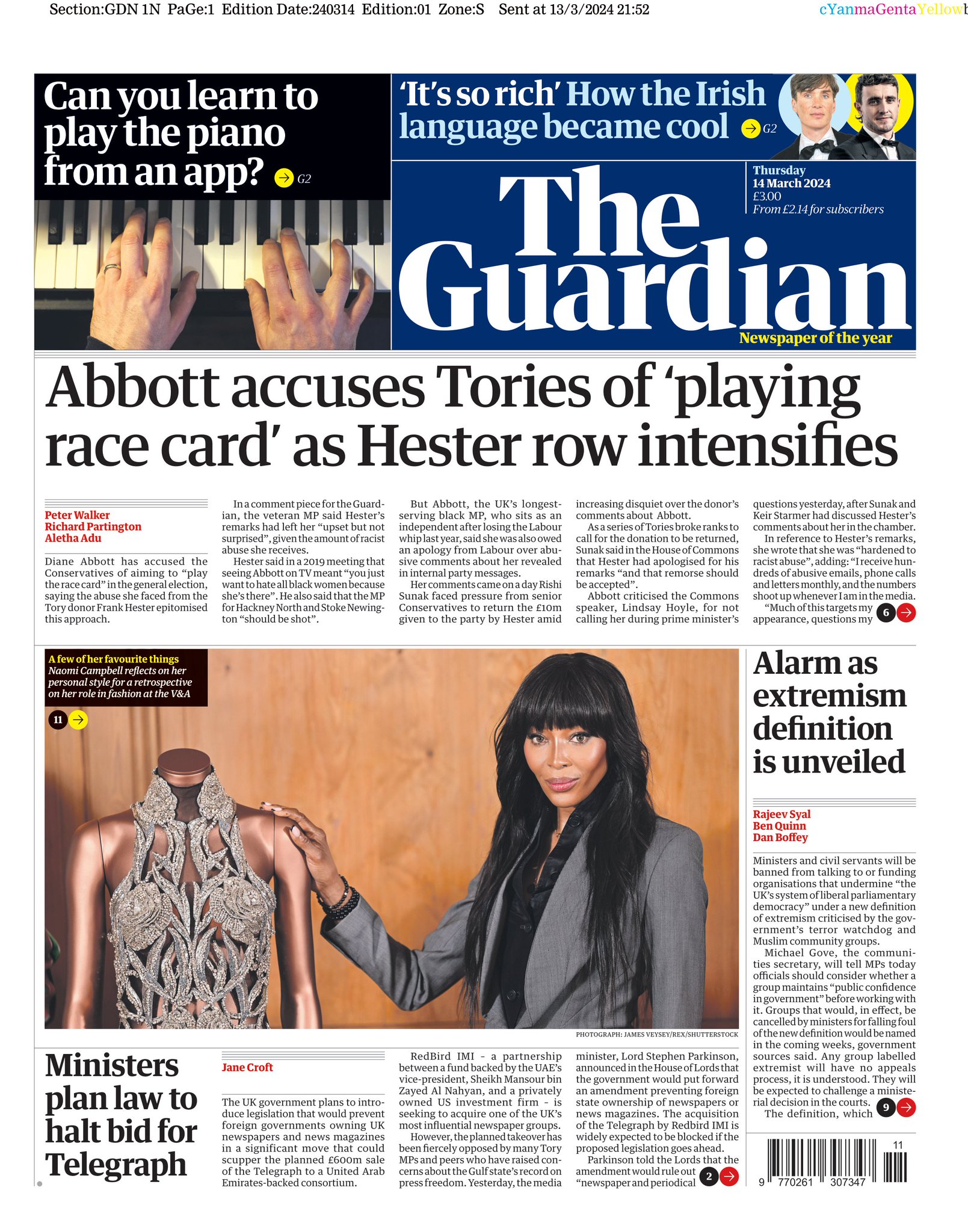 In The Guardian, Diane Abbott pens a piece accusing Tories of exploiting race issues.