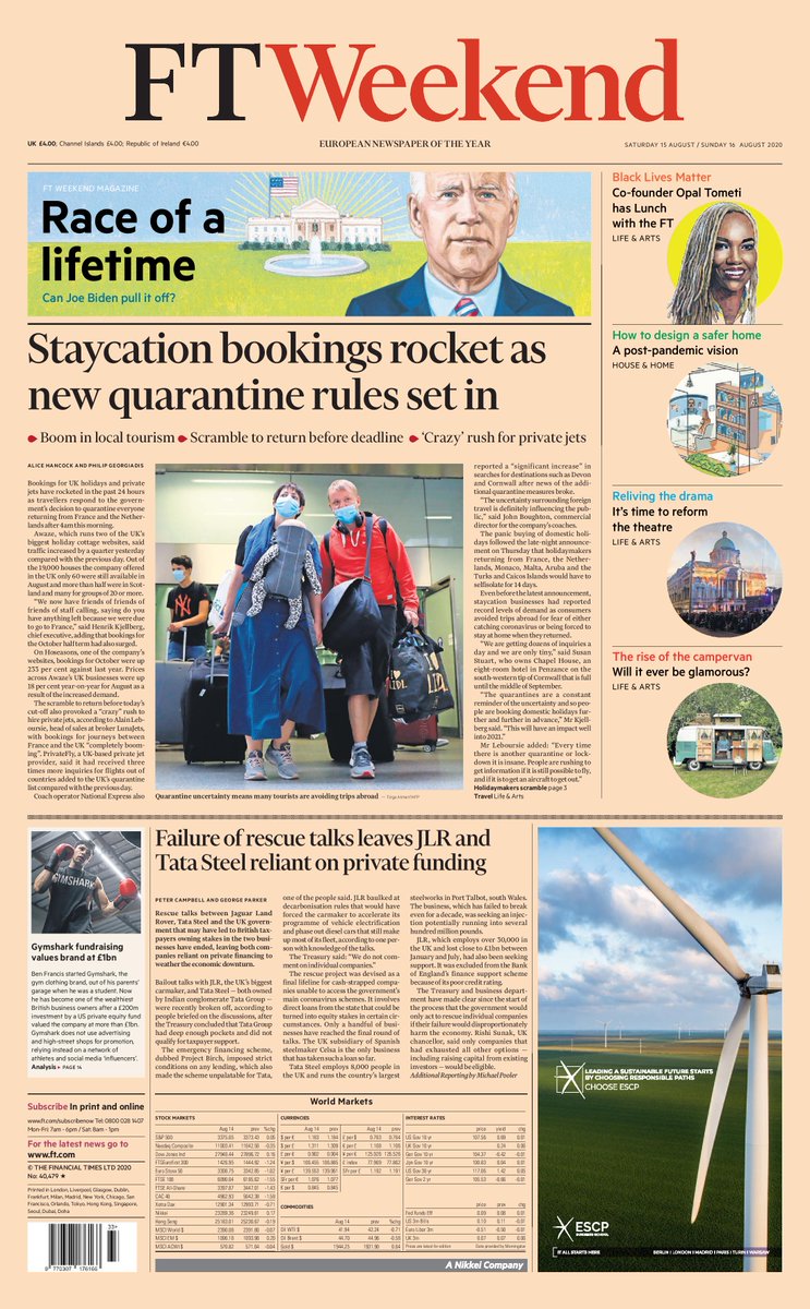 Bookings for UK holidays and private jets have rocketed in the past 24 hours as travellers respond to France and the Netherlands being added to the quarantine list, the Financial Times reports.
