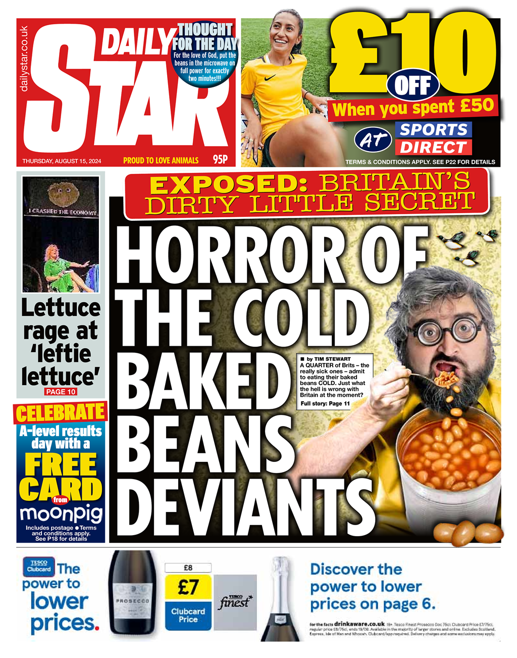 A survey reveals that 25% of Britons consume baked beans cold, reports the Daily Star.