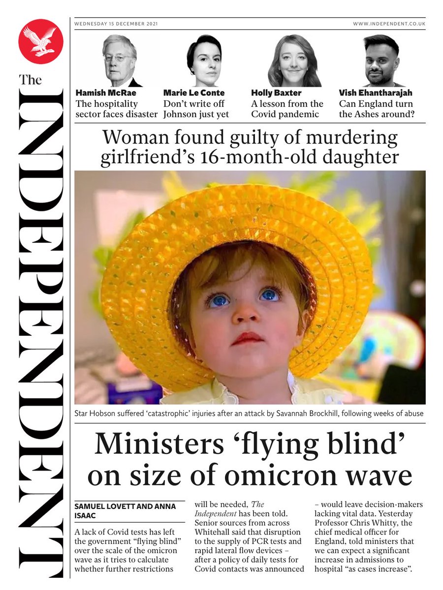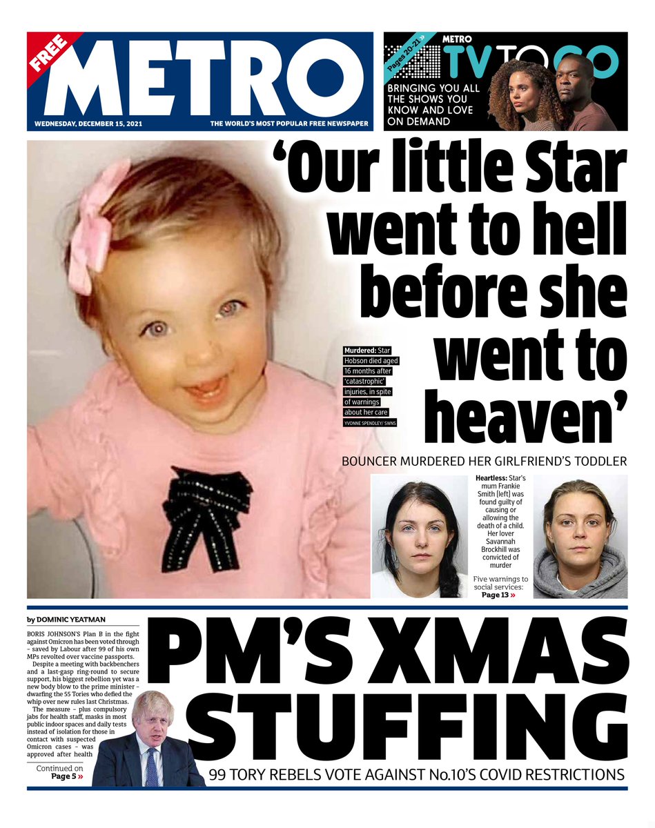 The Daily Mirror leads with the death of 16-month-old Star Hobson.