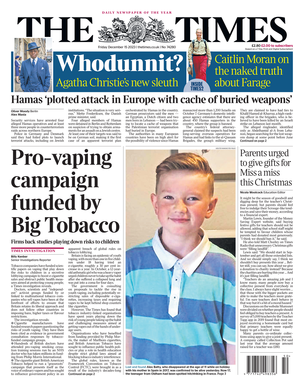 Times Front Page 15th of December 2023