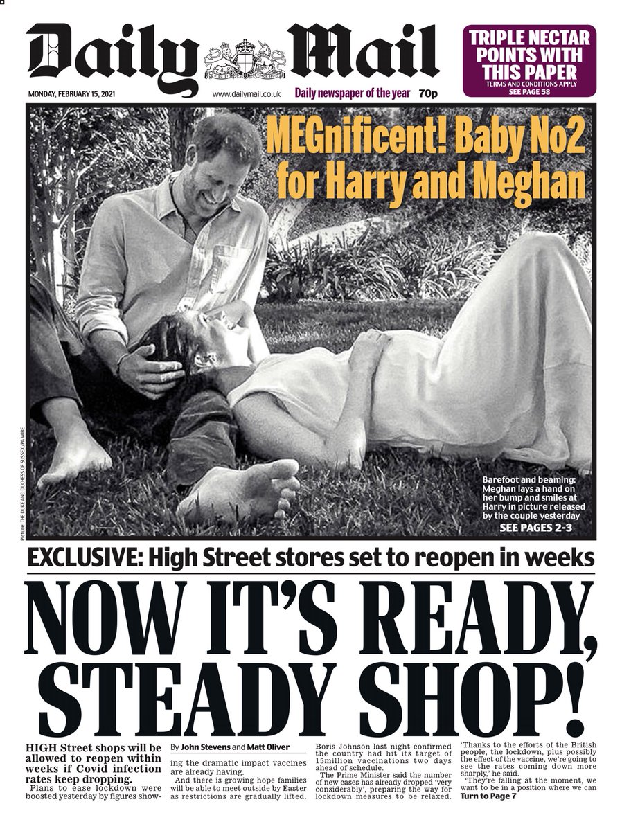 High Street shops will be able to reopen within weeks if COVID-19 rates continue to drop – that’s on the front of the Daily Mail.