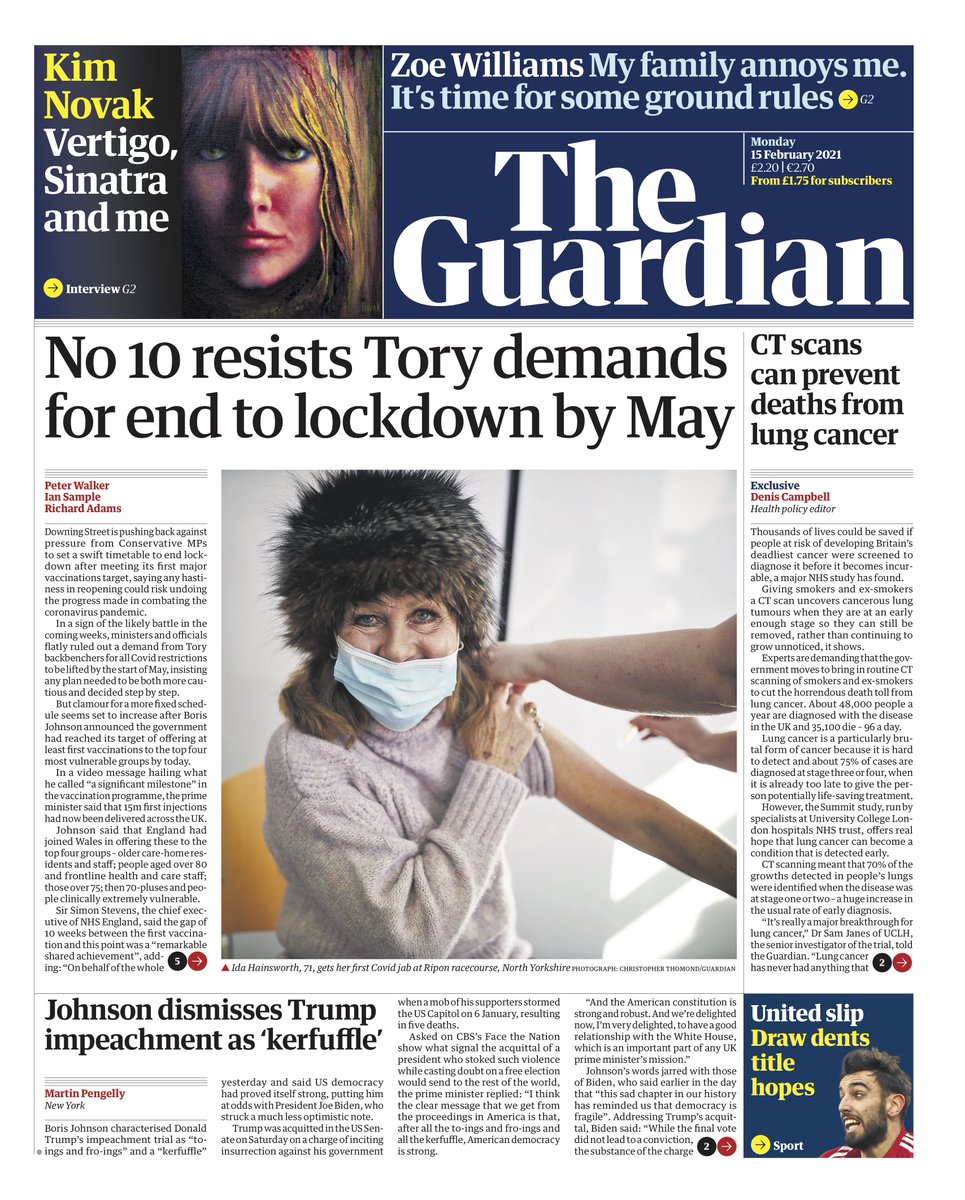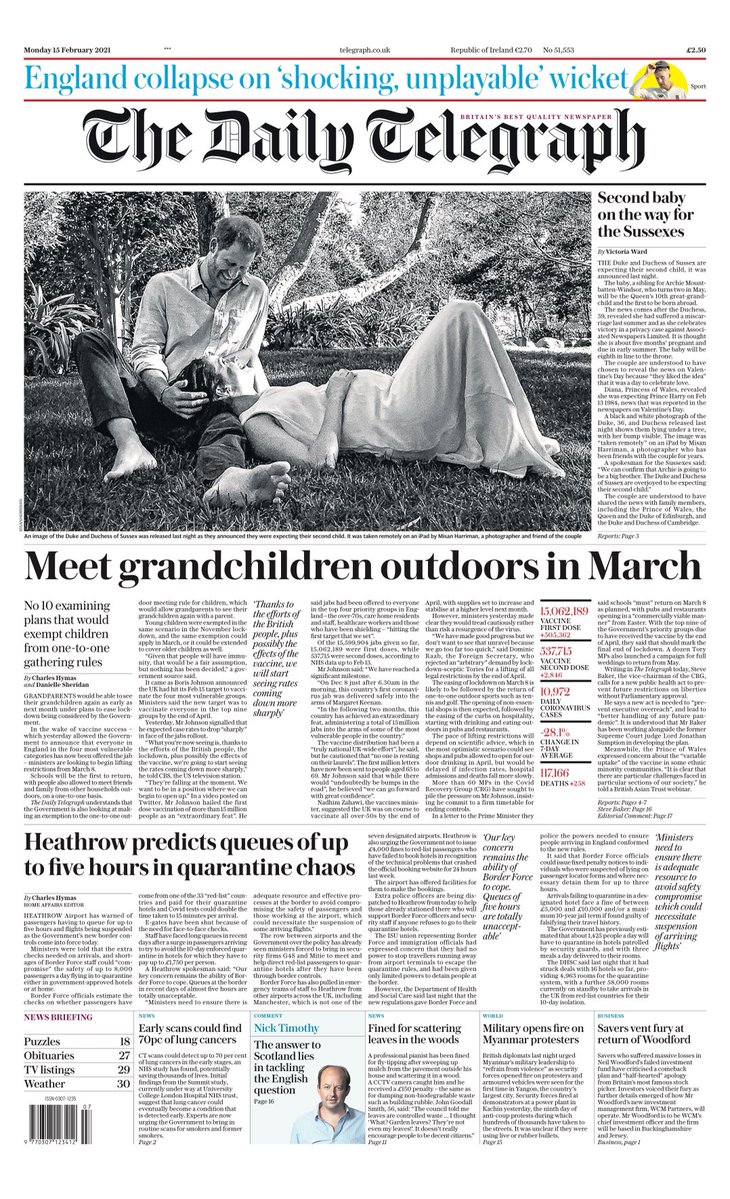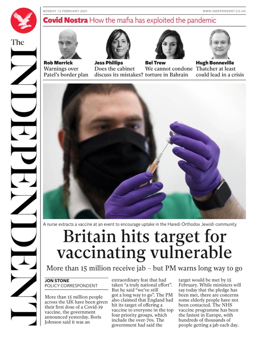 The Daily Express reports on the next vaccination goal – 32 million people receiving their first dose by the end of April.