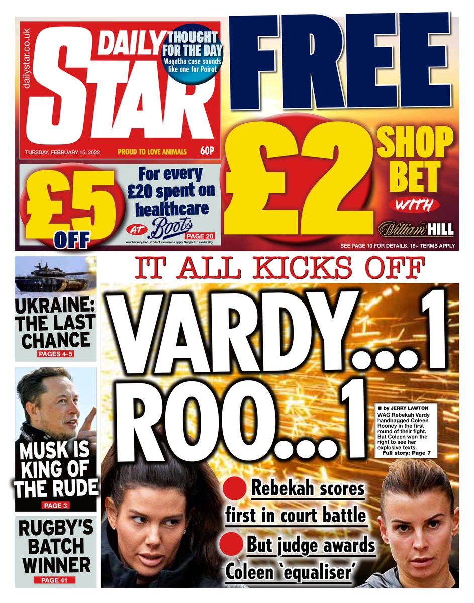 The Daily Star reports on the “Wagatha Christie” row after the court ruled that Coleen Rooney cannot bring a court case against Rebekah Vardy’s agent.
