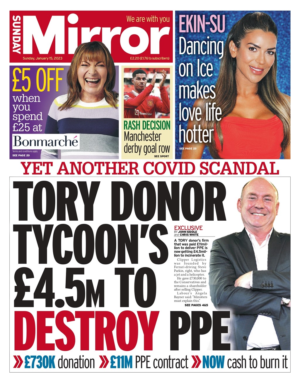 The Daily Mirror reports that a Tory donor’s firm that was paid £11m to deliver PPE is now being paid £4.5m to incinerate it.