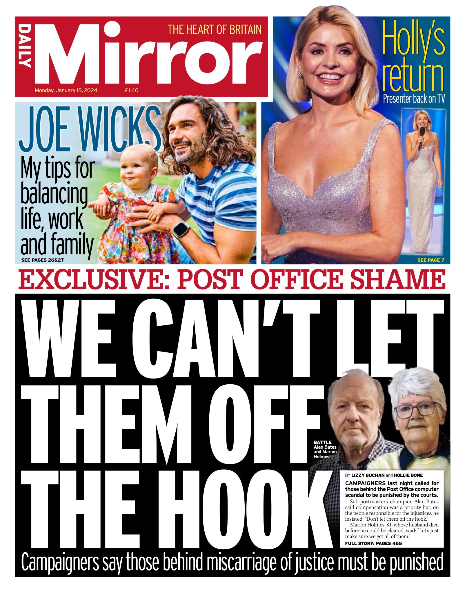 Alan Bates, leader of the sub-postmasters’ justice campaign, insists on accountability for the Post Office scandal, reports the Daily Mirror.