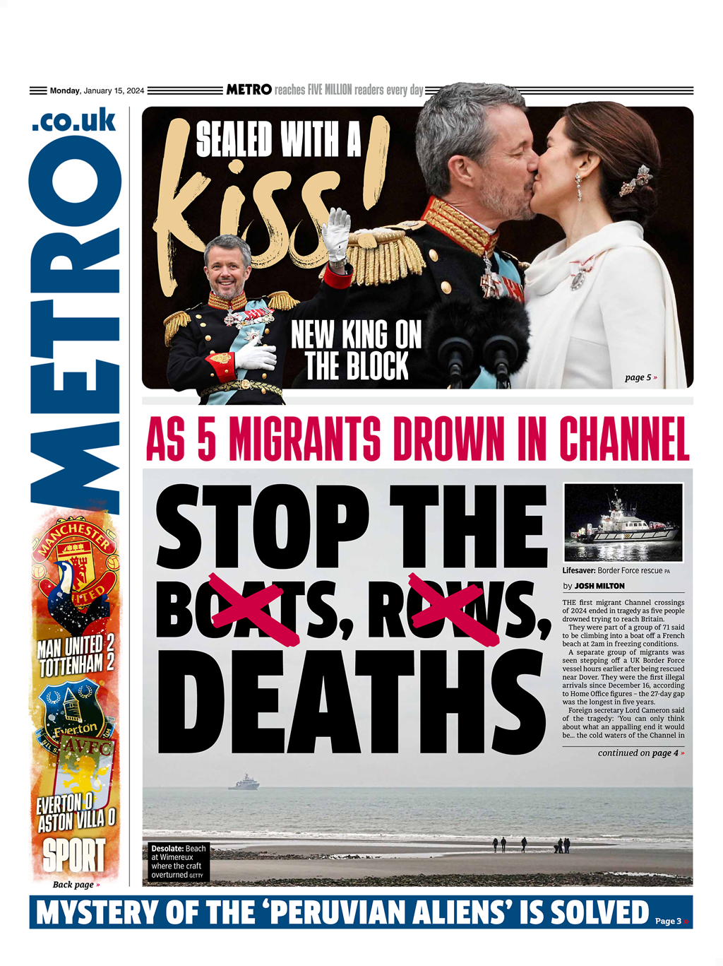 The Metro reports on the urgent call to prevent migrant fatalities in the Channel following five deaths.