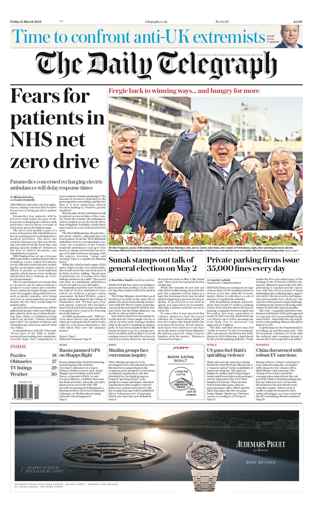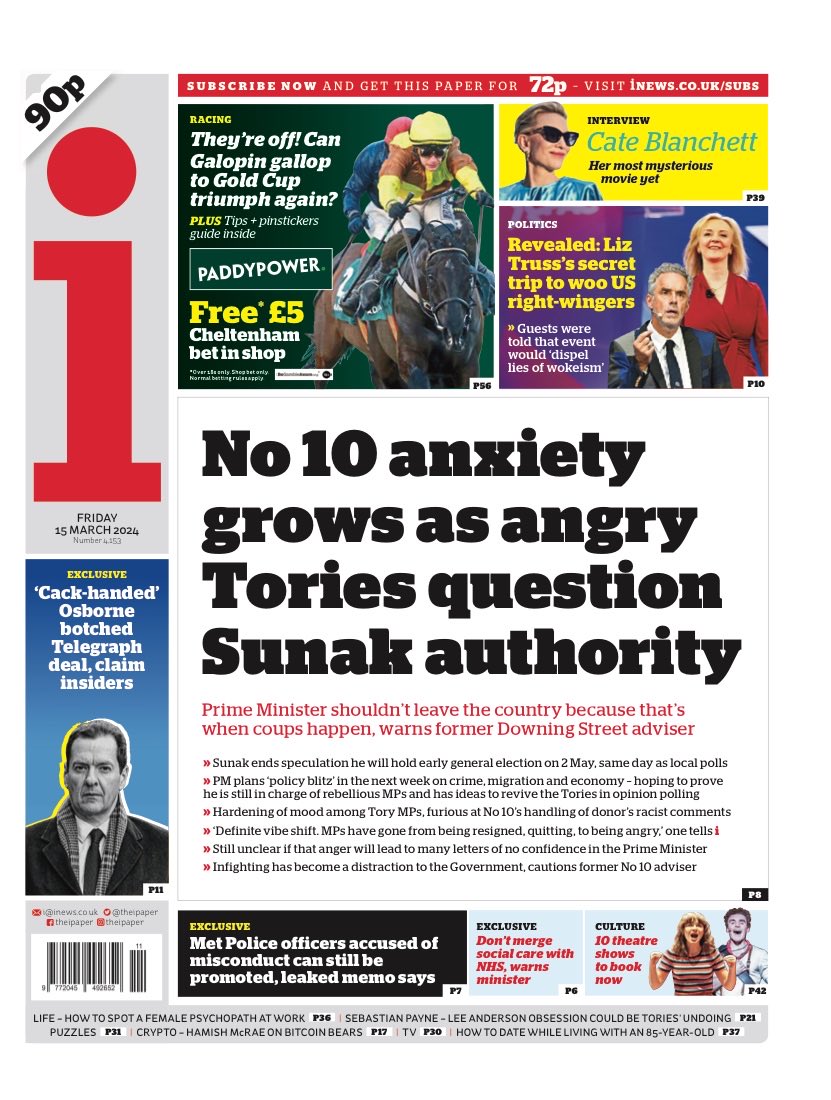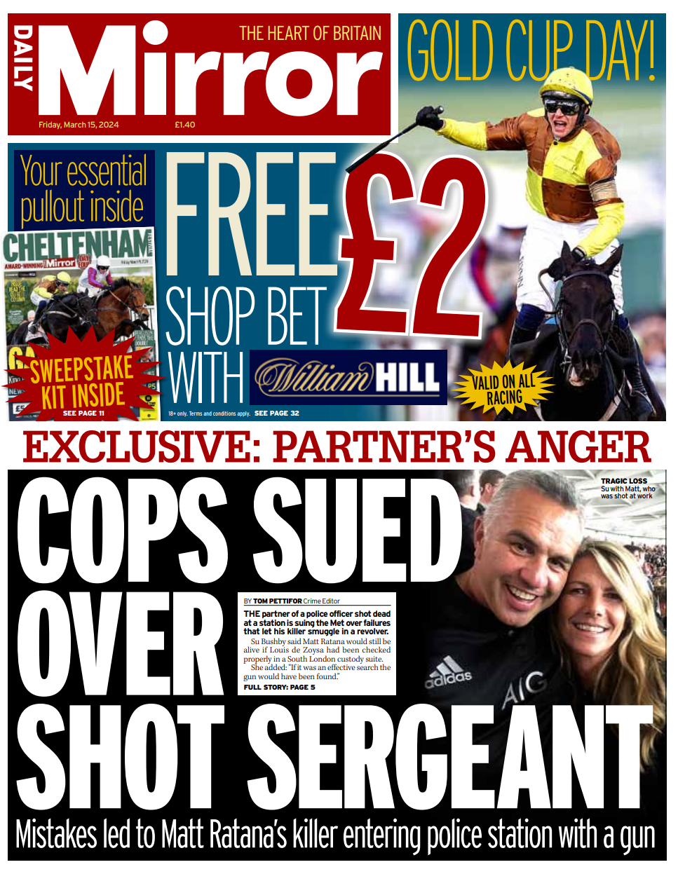 Daily Mirror Front Page 15th of March 2024