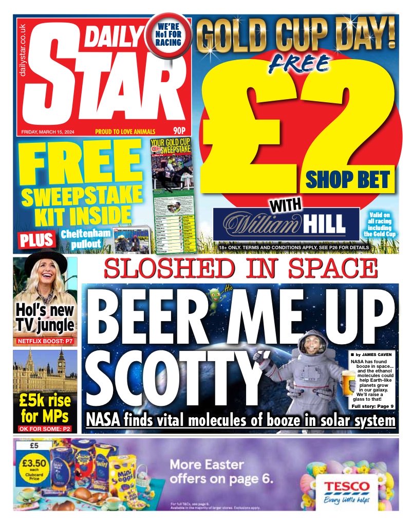 The Daily Star reveals that NASA scientists have discovered ethanol, also known as alcohol, in space.