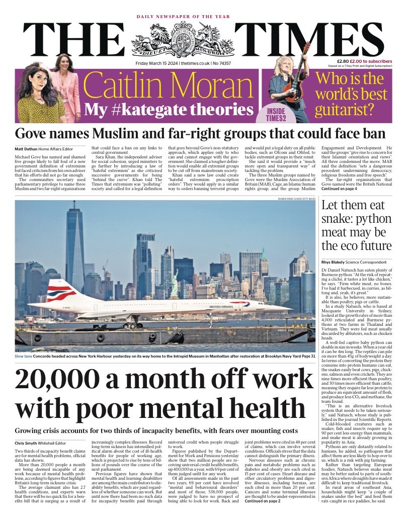 The Times reveals that over 20,000 individuals are declared unfit for work monthly due to mental health issues.
