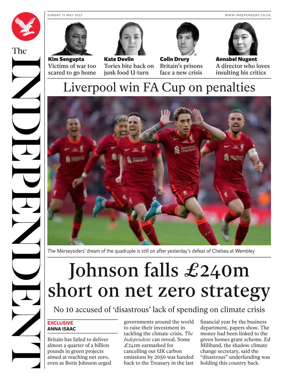 On the front page of Sunday’s Telegraph, the joy of FA Cup-winning captain Jordan Henderson is captured.