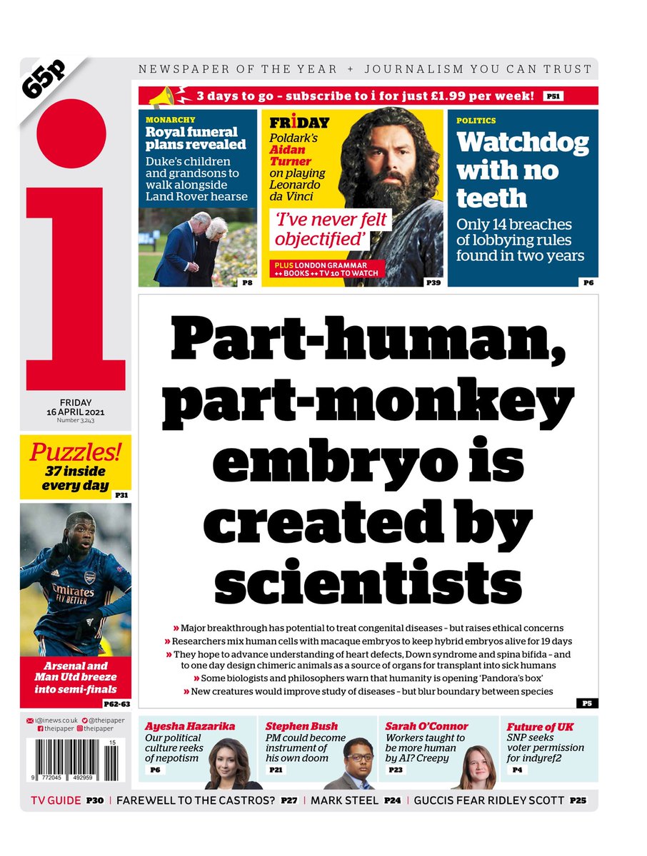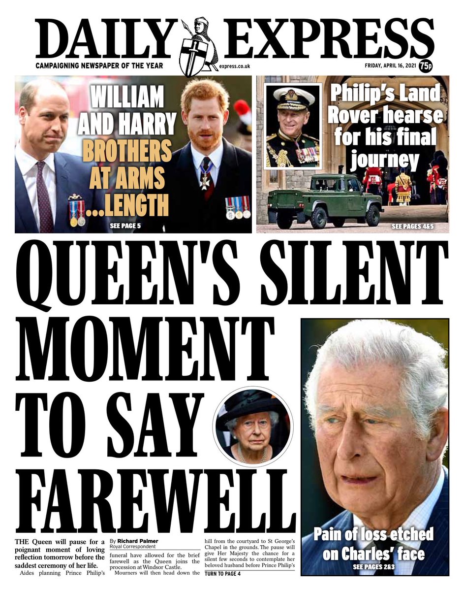 Princes William and Harry will be close but still apart at Prince Philip’s funeral – that’s the lead in the Metro.