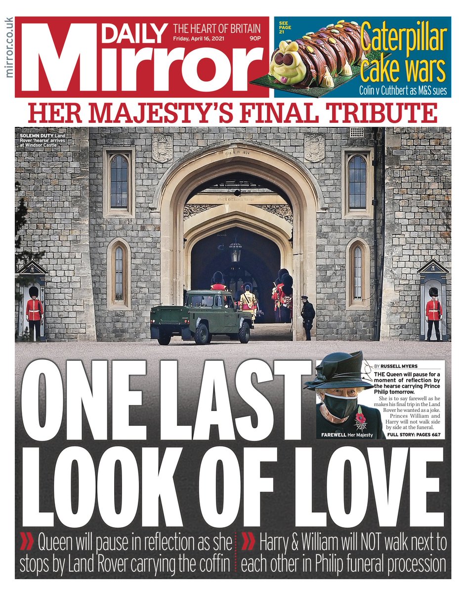 The Daily Mirror goes with the monarch’s last chance to say goodbye to Prince Philip, just before the funeral procession begins.