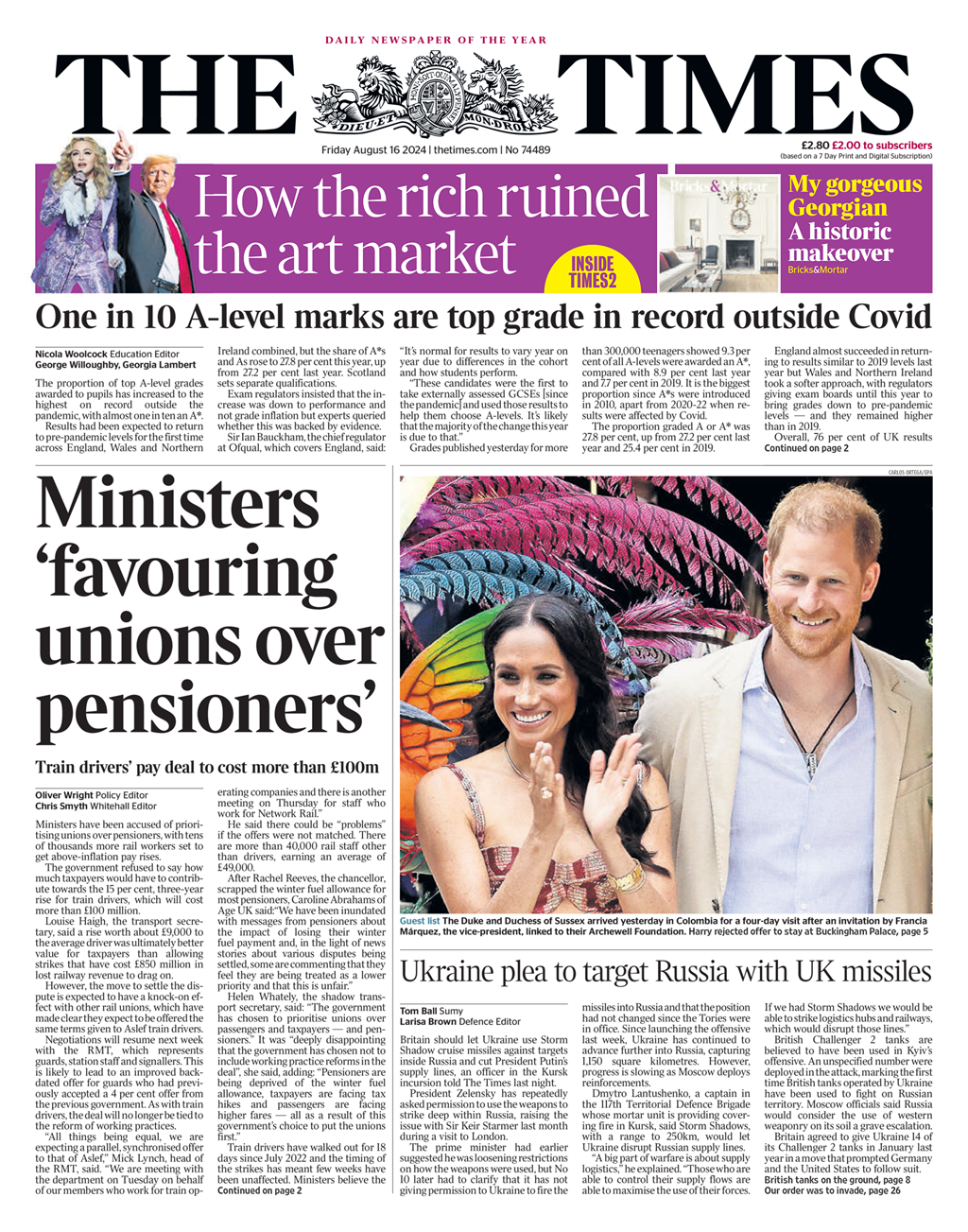 The Times reveals that the shadow transport secretary has accused government ministers of “prioritising unions over pensioners.