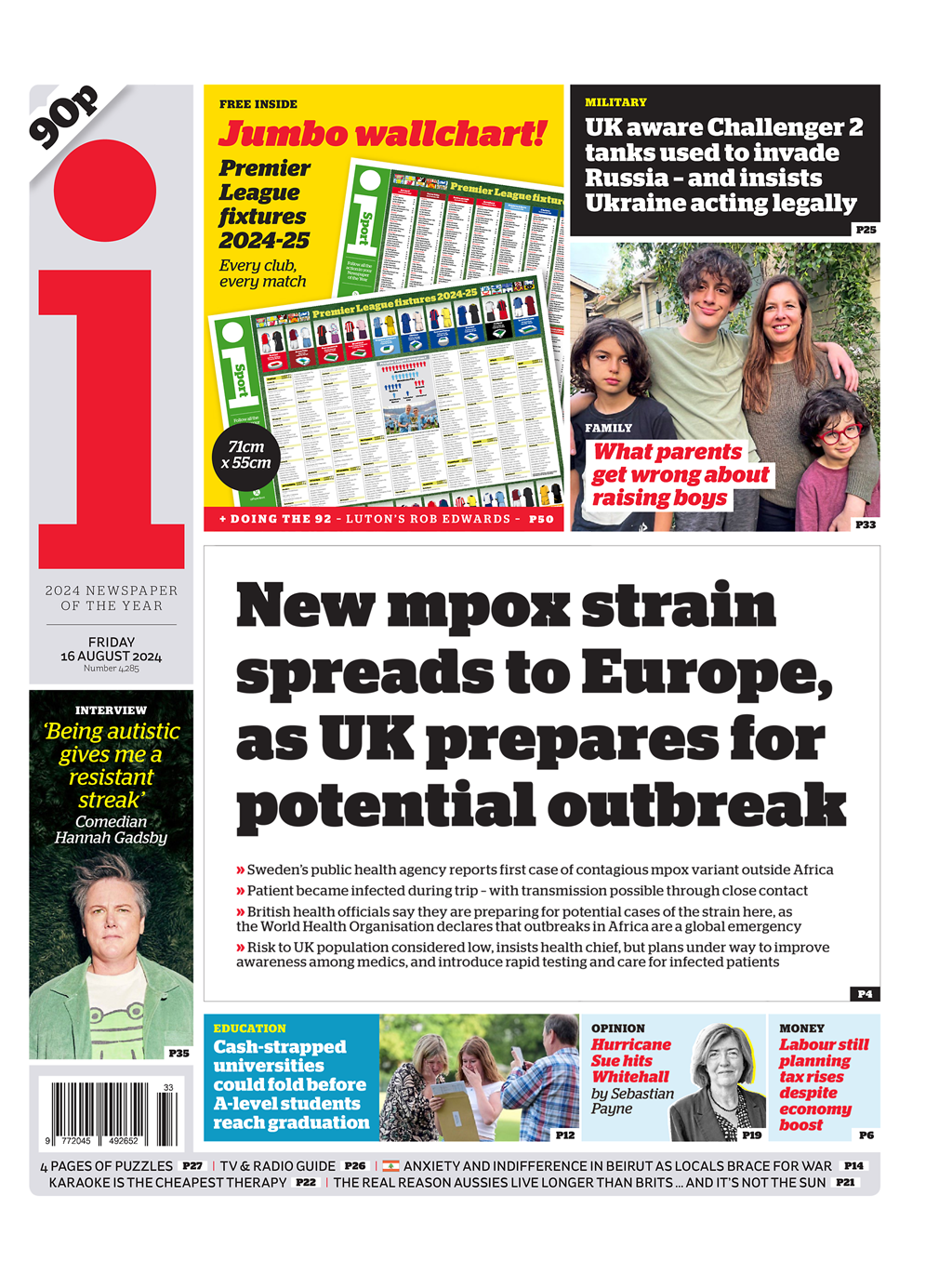 The i reports that a new mpox variant has emerged in Europe, leading British health officials to prepare for potential cases.