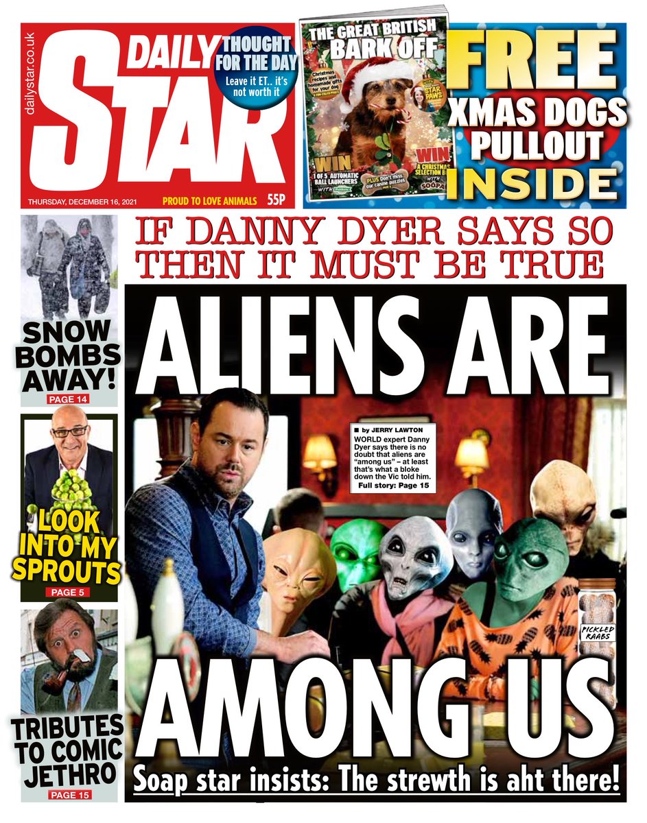 The Daily Star has a story about actor Danny Dyer and his belief in the existence of aliens.