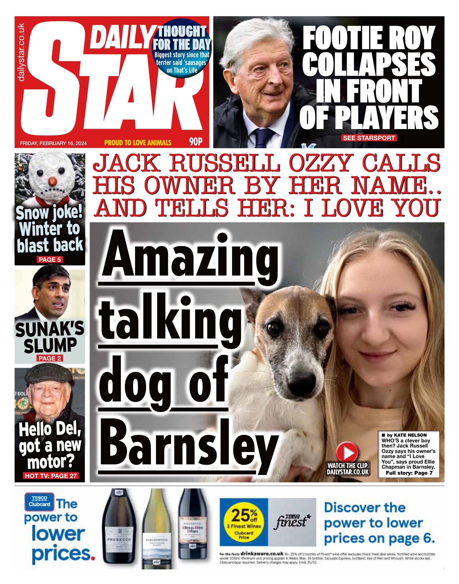 The Daily Star shares a story of a Barnsley woman who insists her pet Jack Russell, Ozzy, can express his affection verbally.