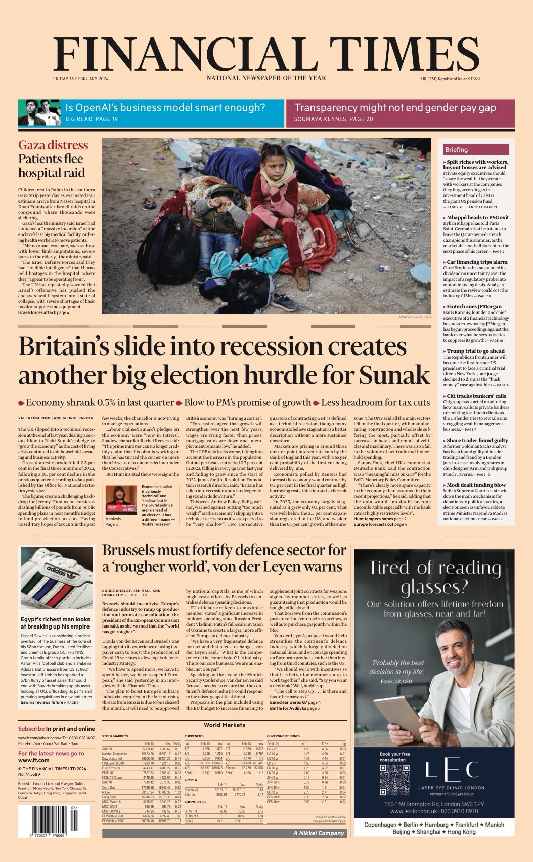 The Financial Times highlights the UK’s recession as a significant electoral challenge for Prime Minister Rishi Sunak.