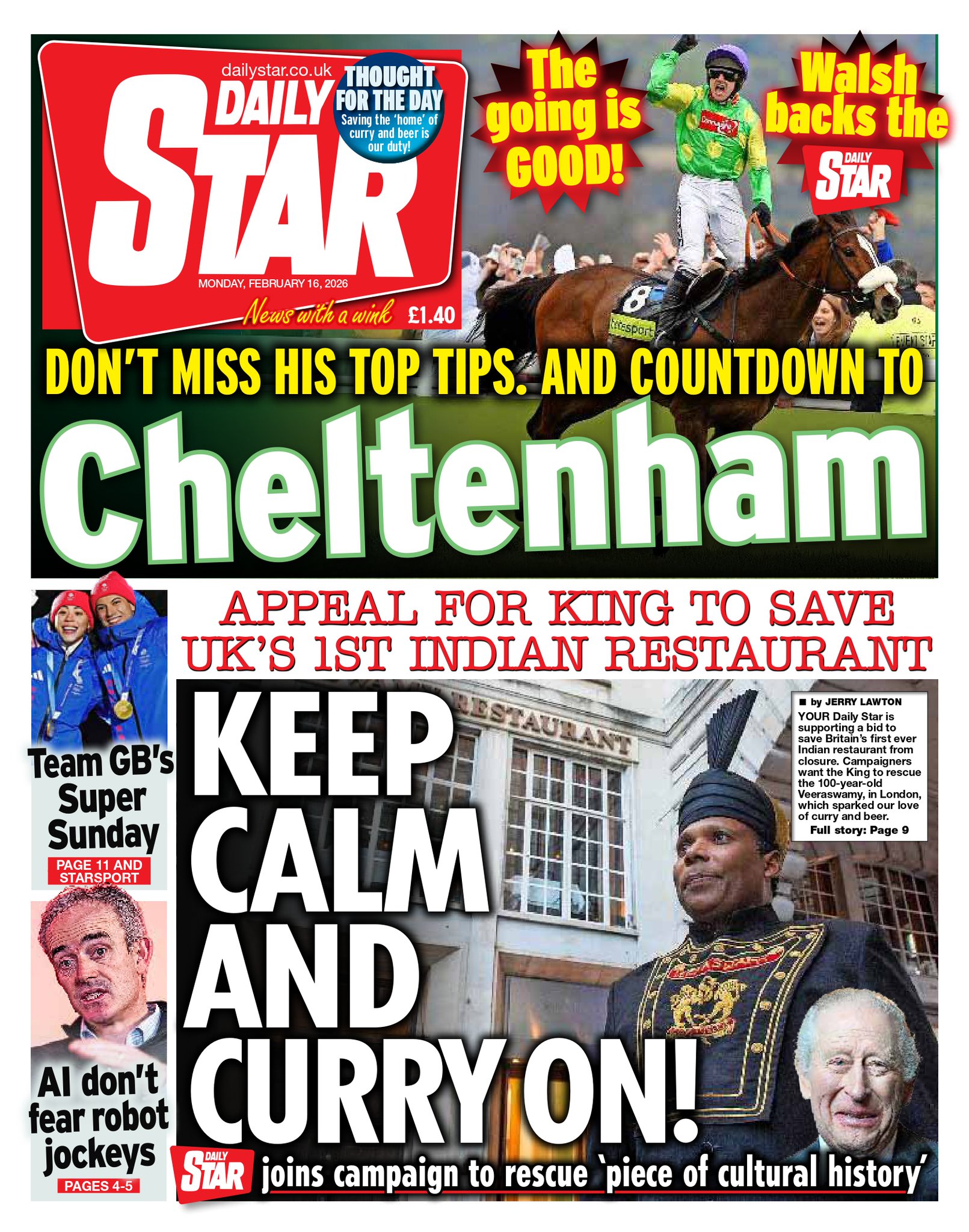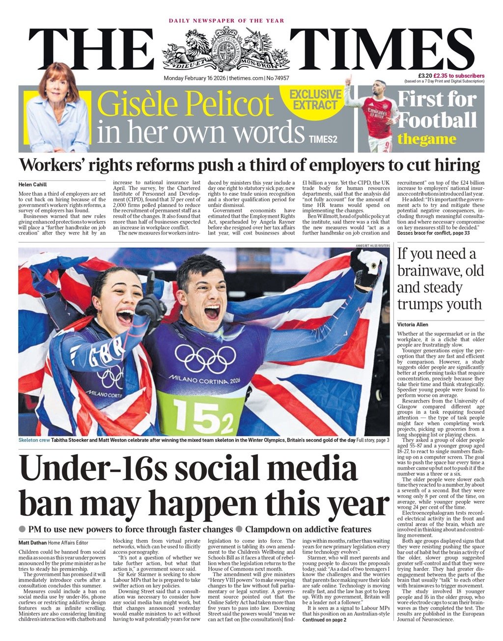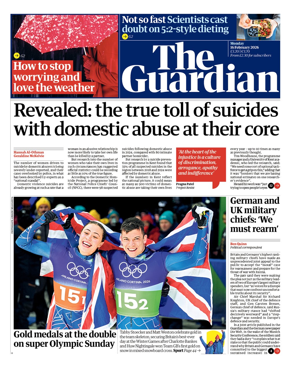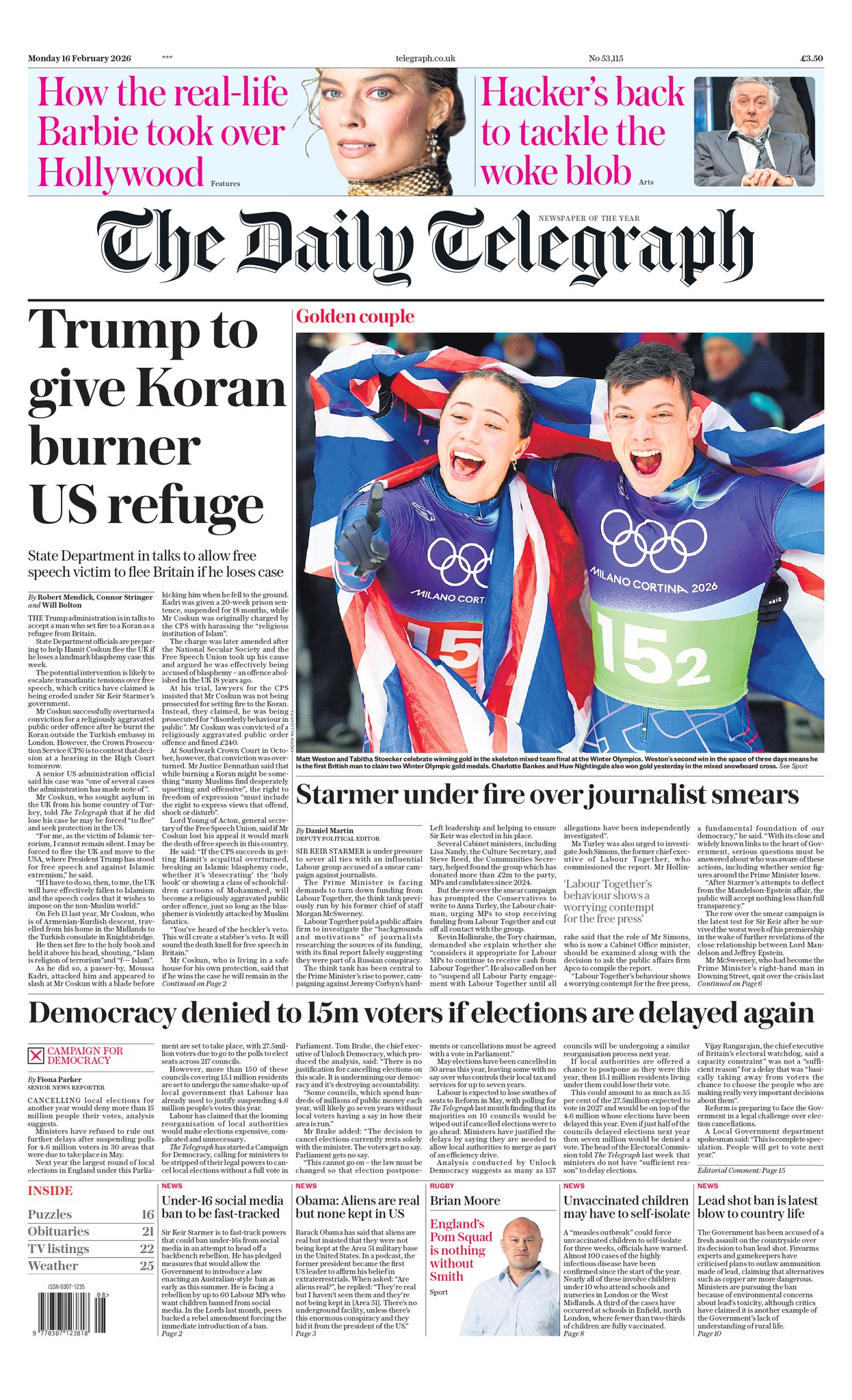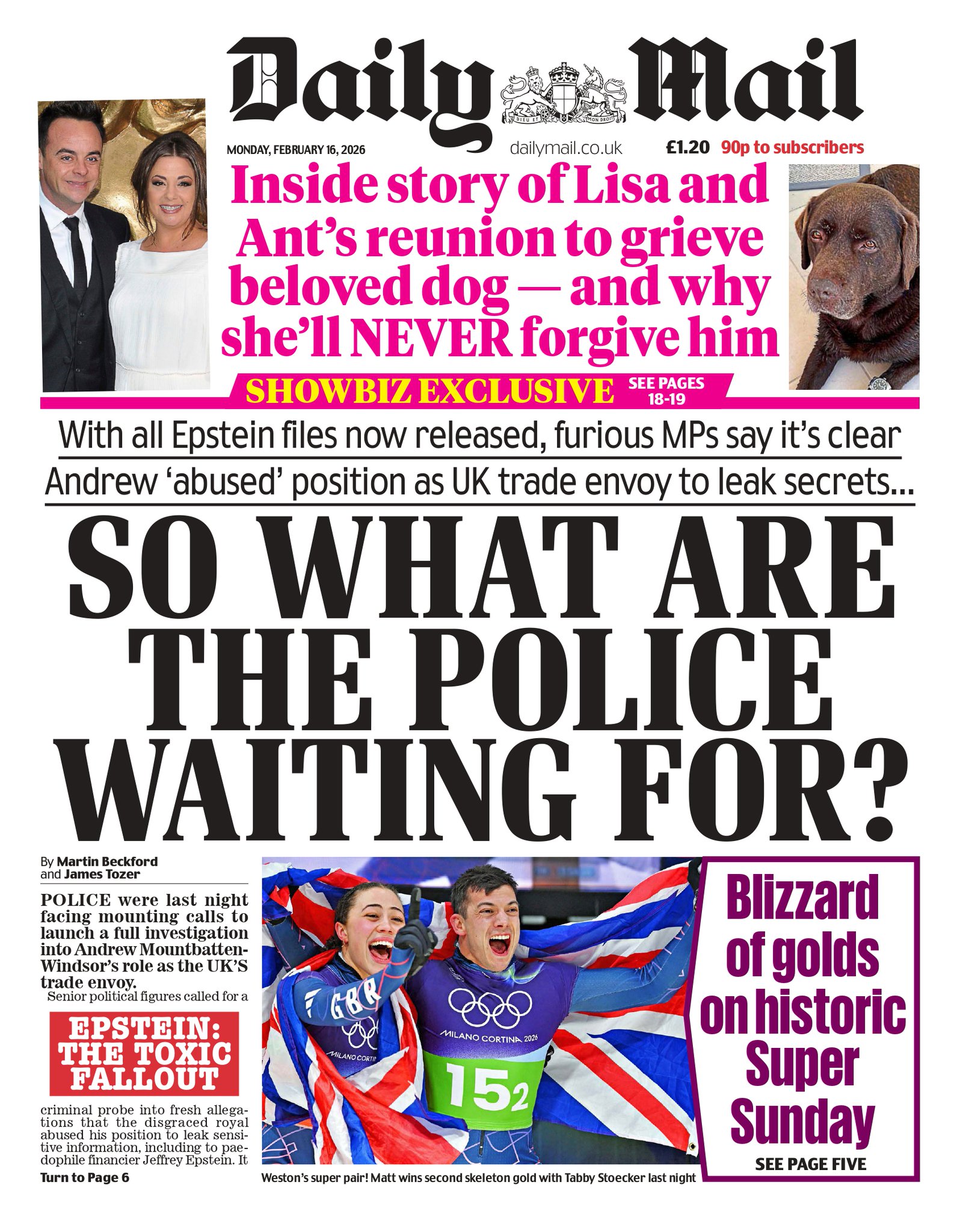 Daily Mail Front Page 16th of February 2026