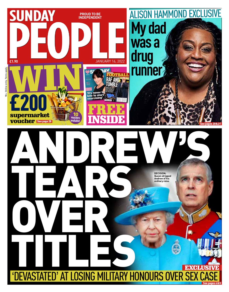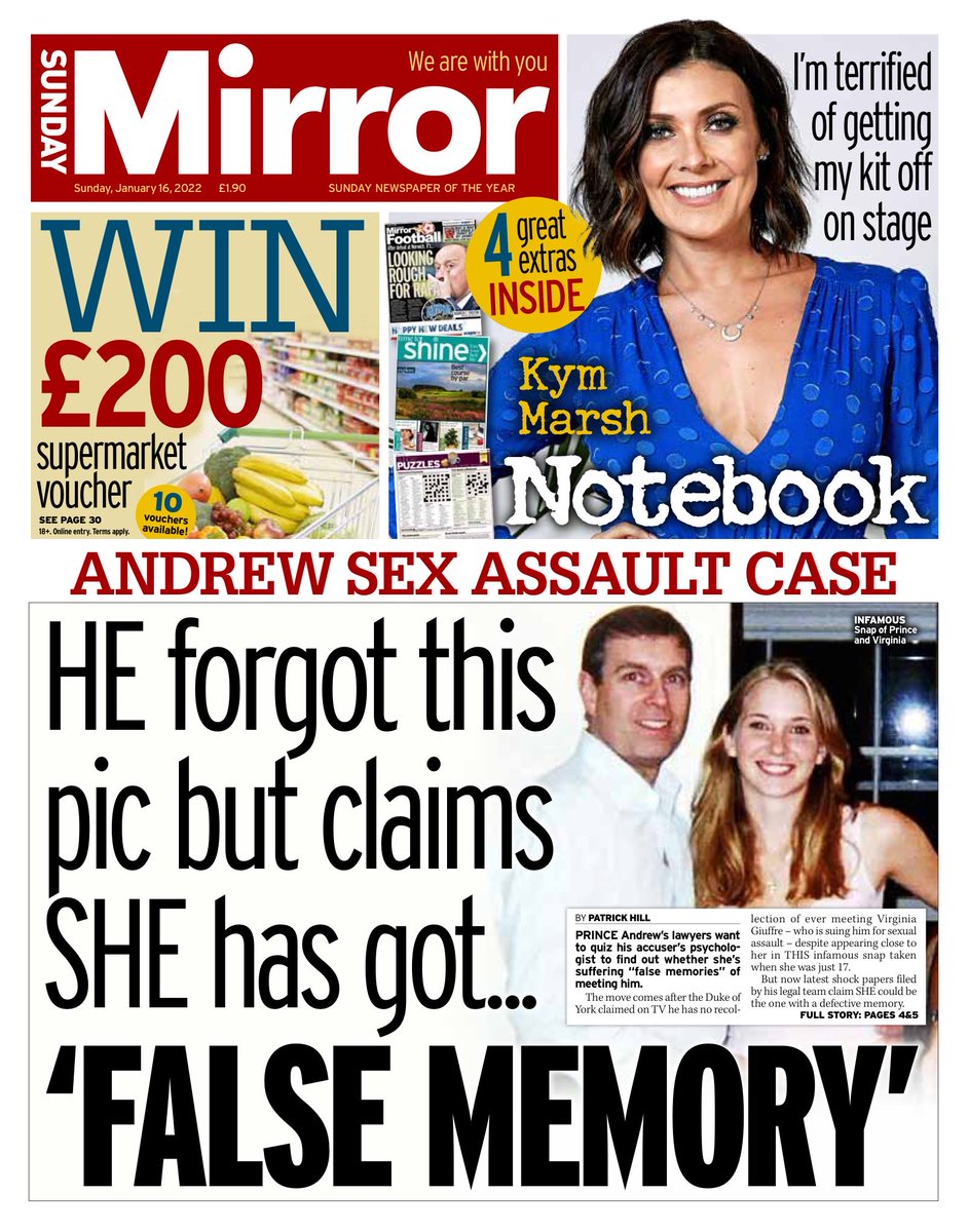The Sunday Mirror has the latest on the sexual assault claim against Prince Andrew (which he denies).