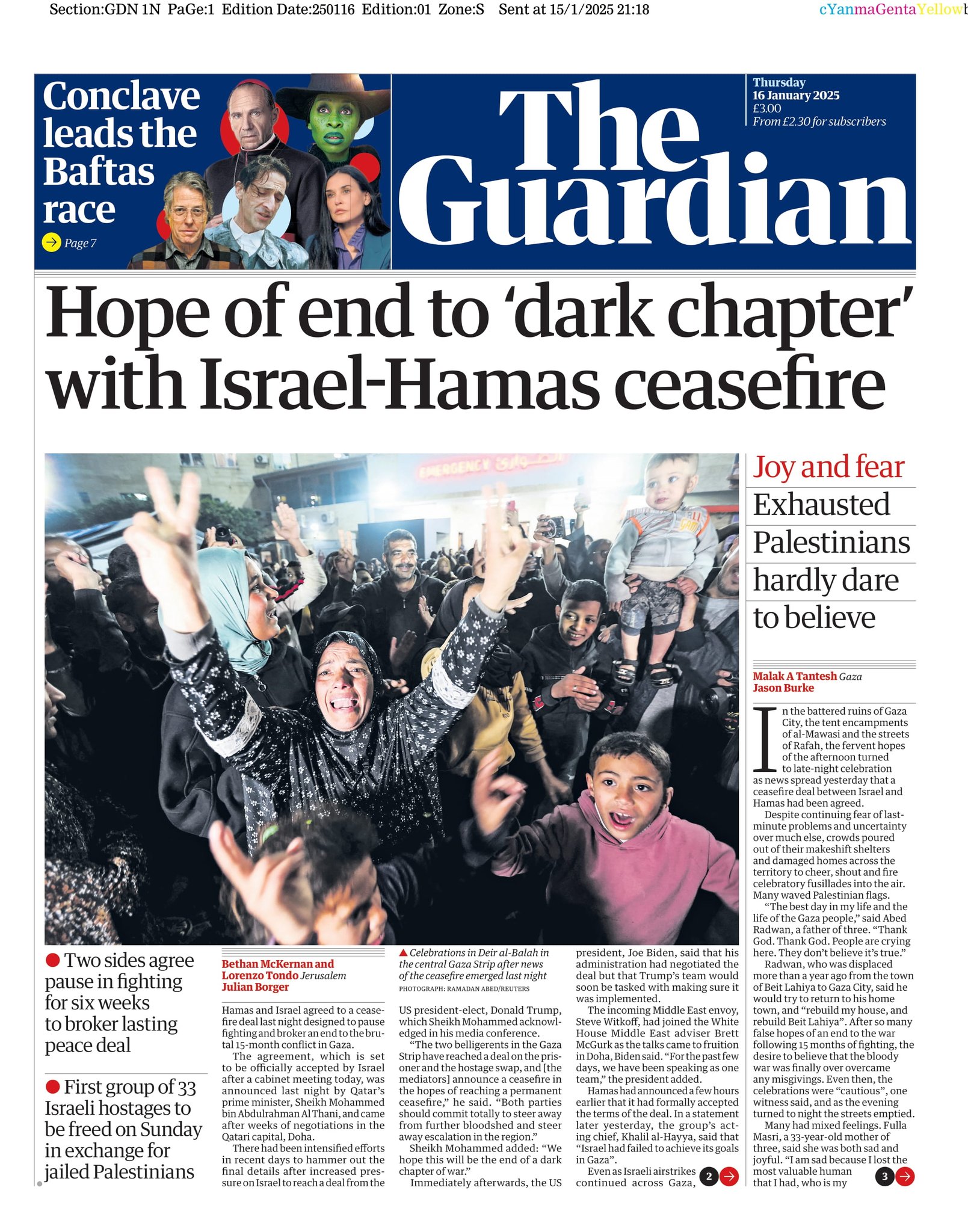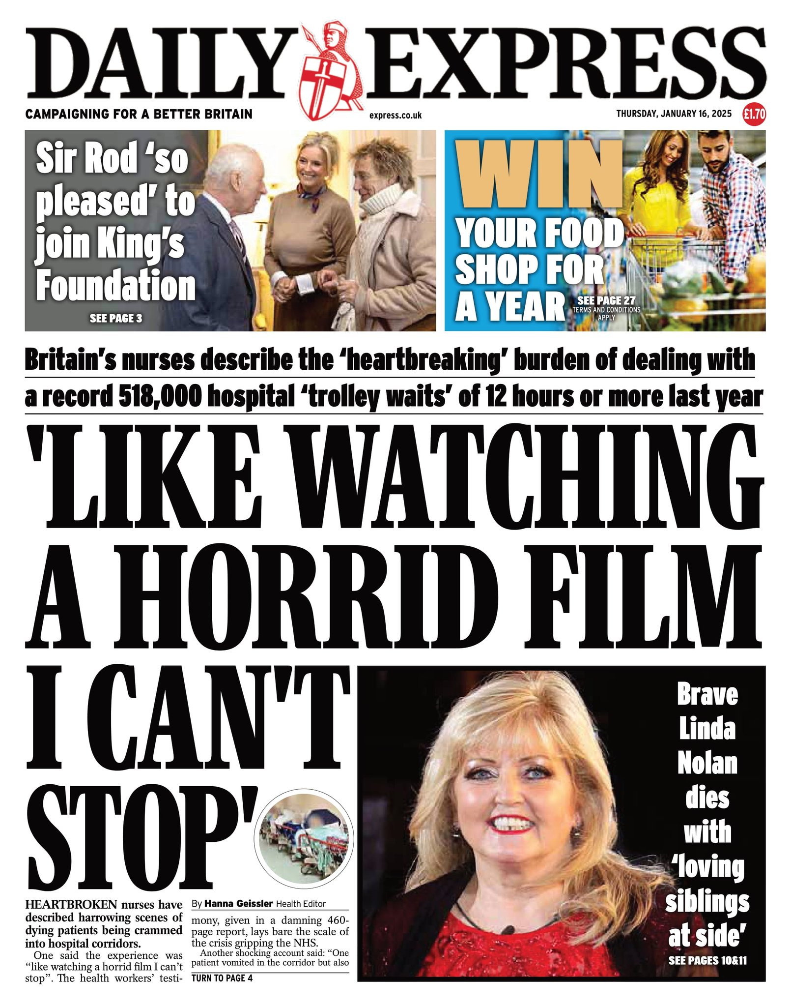 Times Front Page 16th of January 2025