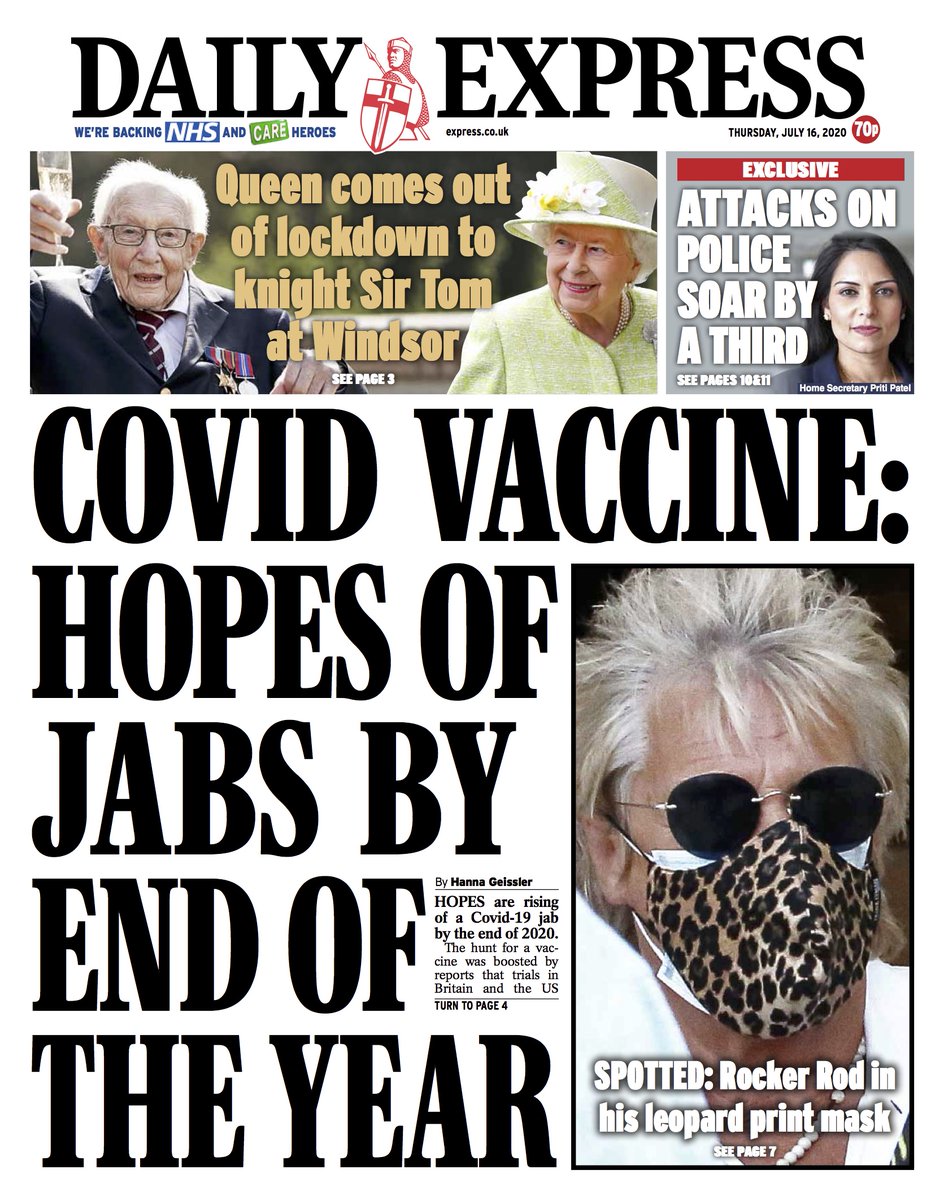 Hopes are rising of a COVID-19 jab by the end of 2020, the Daily Express reports.