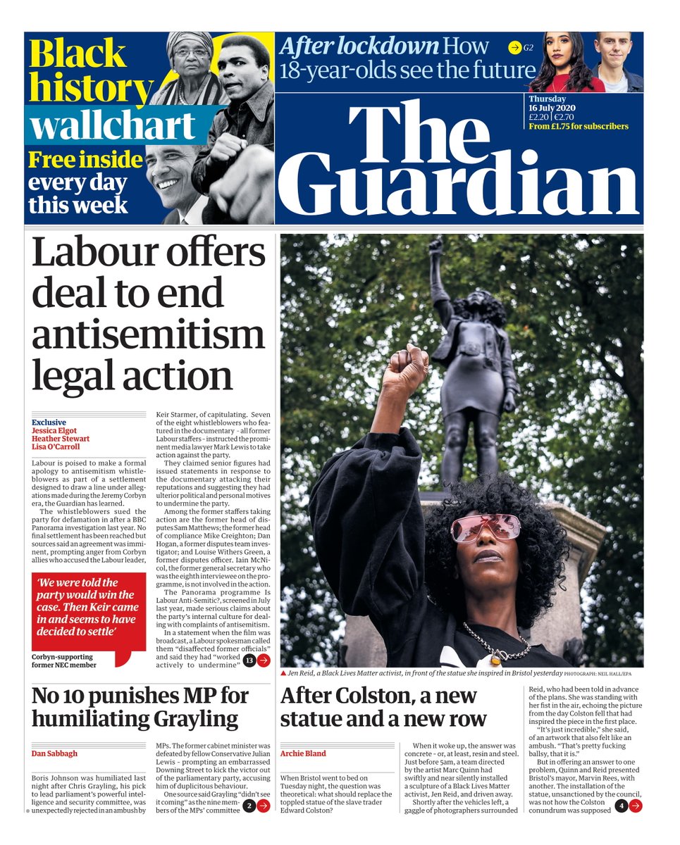 The Guardian writes that Labour is poised to make a formal apology to antisemitism whistleblowers as part of a settlement designed to draw a line under allegations made during the Jeremy Corbyn era.