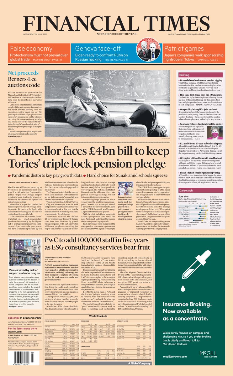 The Financial Times reports on the cost to the Treasury of sticking to the government’s promises on pensions.
