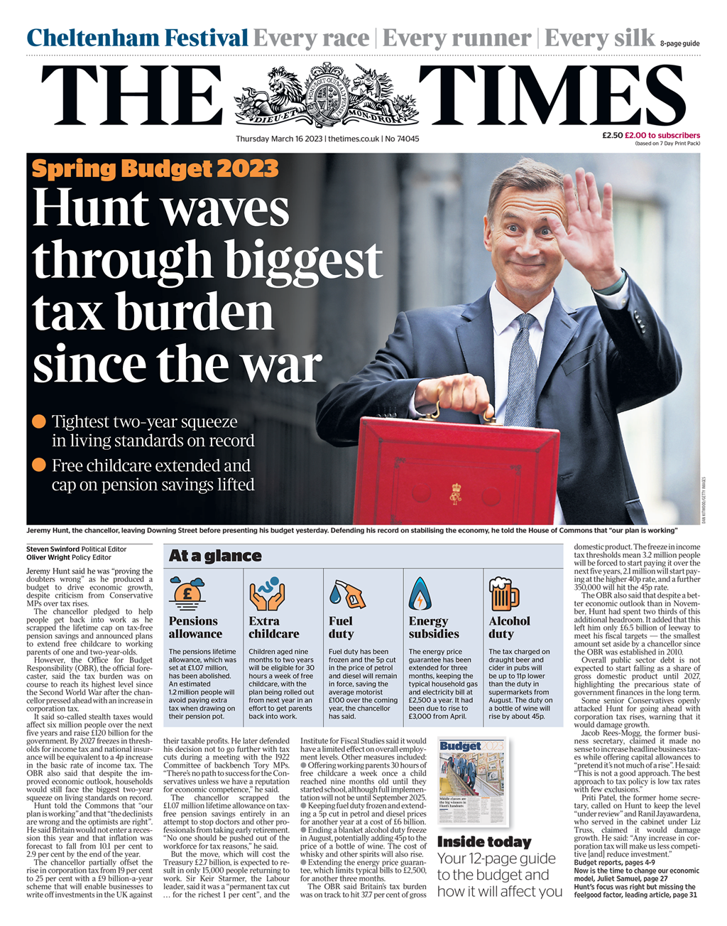 In his budget, Chancellor Jeremy Hunt leaves the UK with the “largest tax burden since the war” and the “tightest two-year squeeze on living standards on records”.