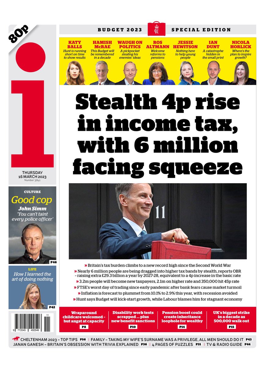 According to the i, the budget included a stealth increase in income tax of 4p.