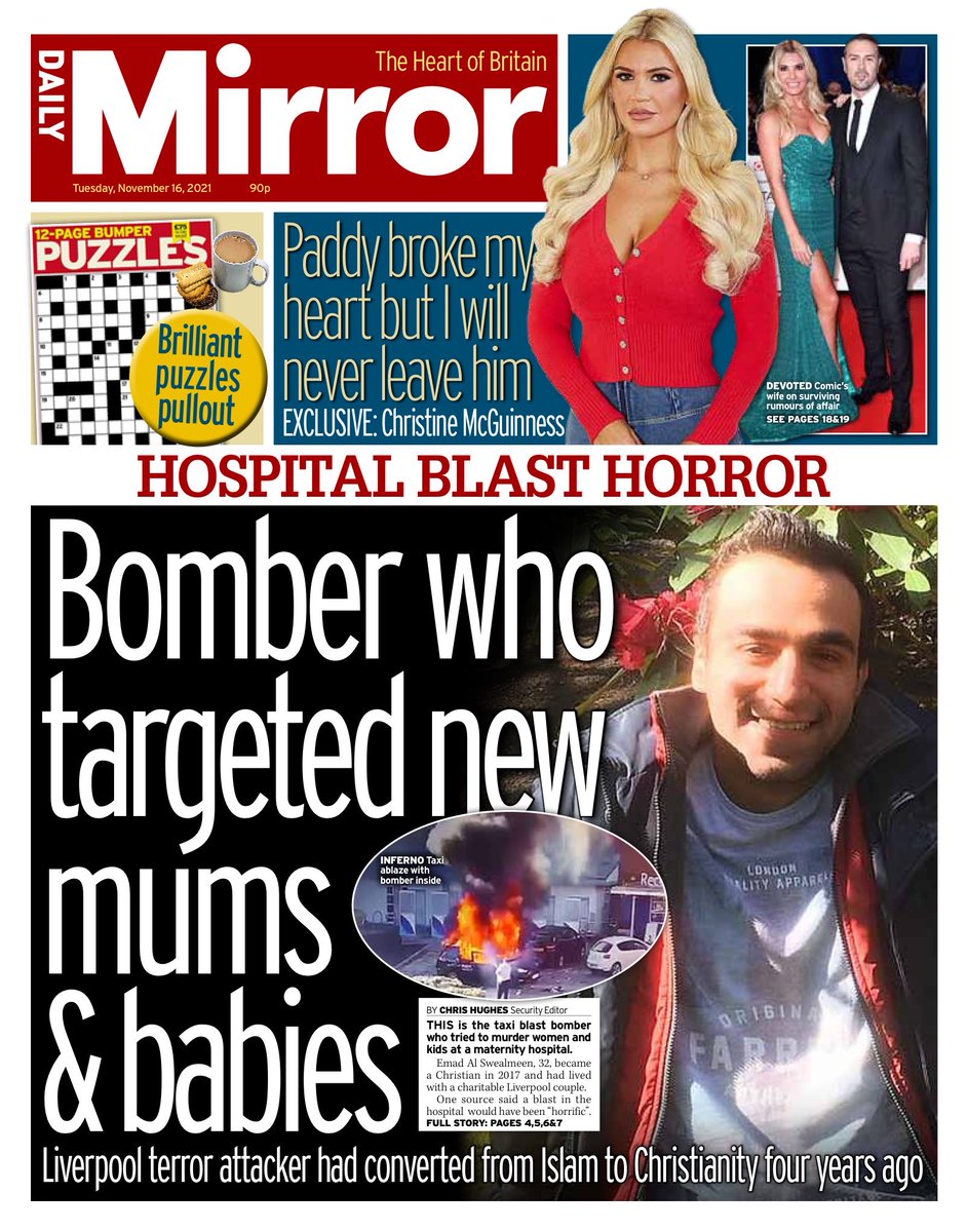 The Telegraph reports on how the suspected terrorist killed in the car explosion outside Liverpool Women’s Hospital, named as Emad al Swealmeen, was a Christian convert.
