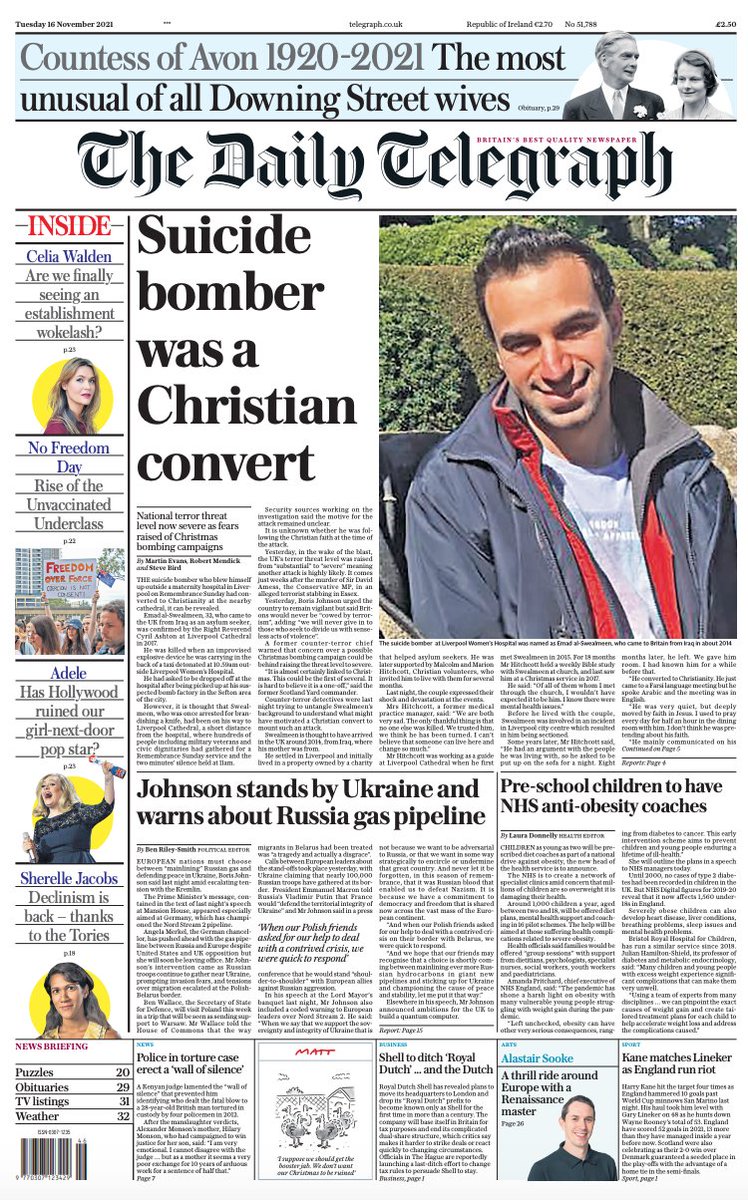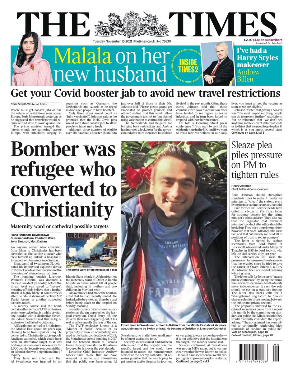 The Times also leads on how the suspected terrorist in Liverpool converted from Islam to Christianity.