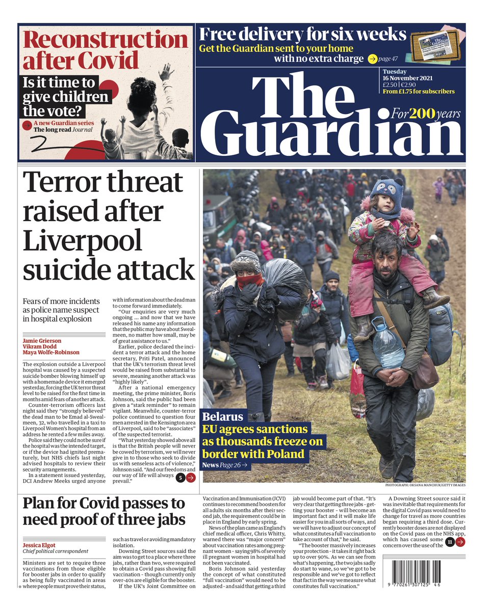 The Daily Mirror also splashes on the suspected terrorist in Liverpool, named as Emad al Swealmeen.