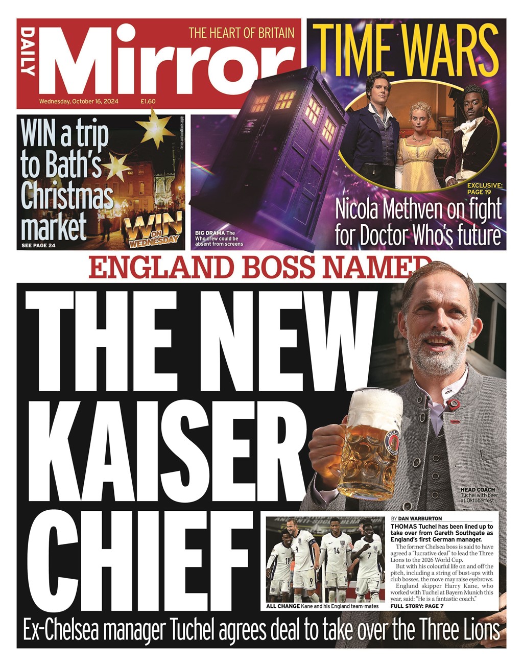 The Daily Mirror reveals that Thomas Tuchel is being considered to succeed Gareth Southgate as England’s first German manager.