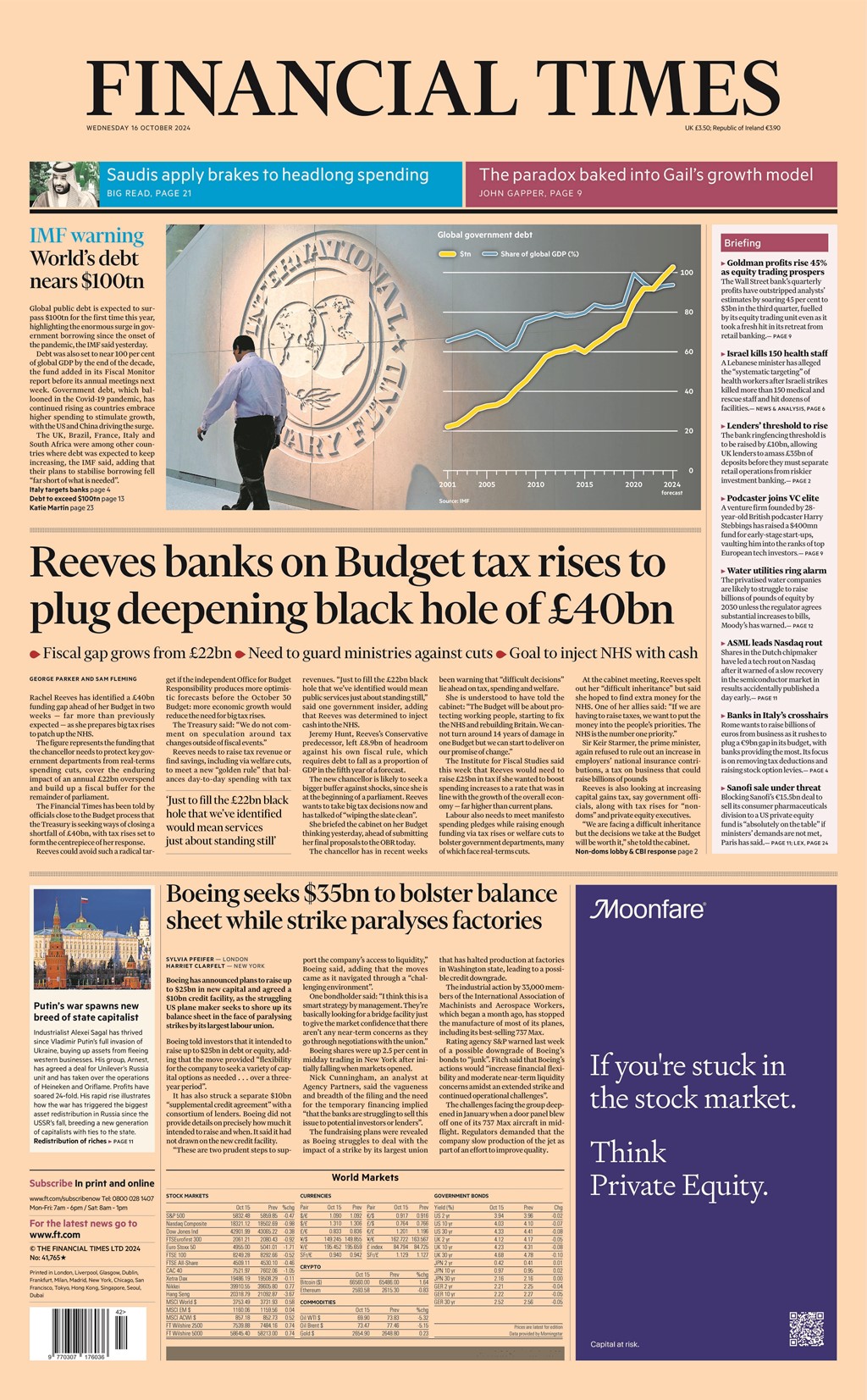 Rachel Reeves has discovered a £40 billion funding shortfall before her upcoming Budget, significantly exceeding earlier projections, reports the Financial Times.