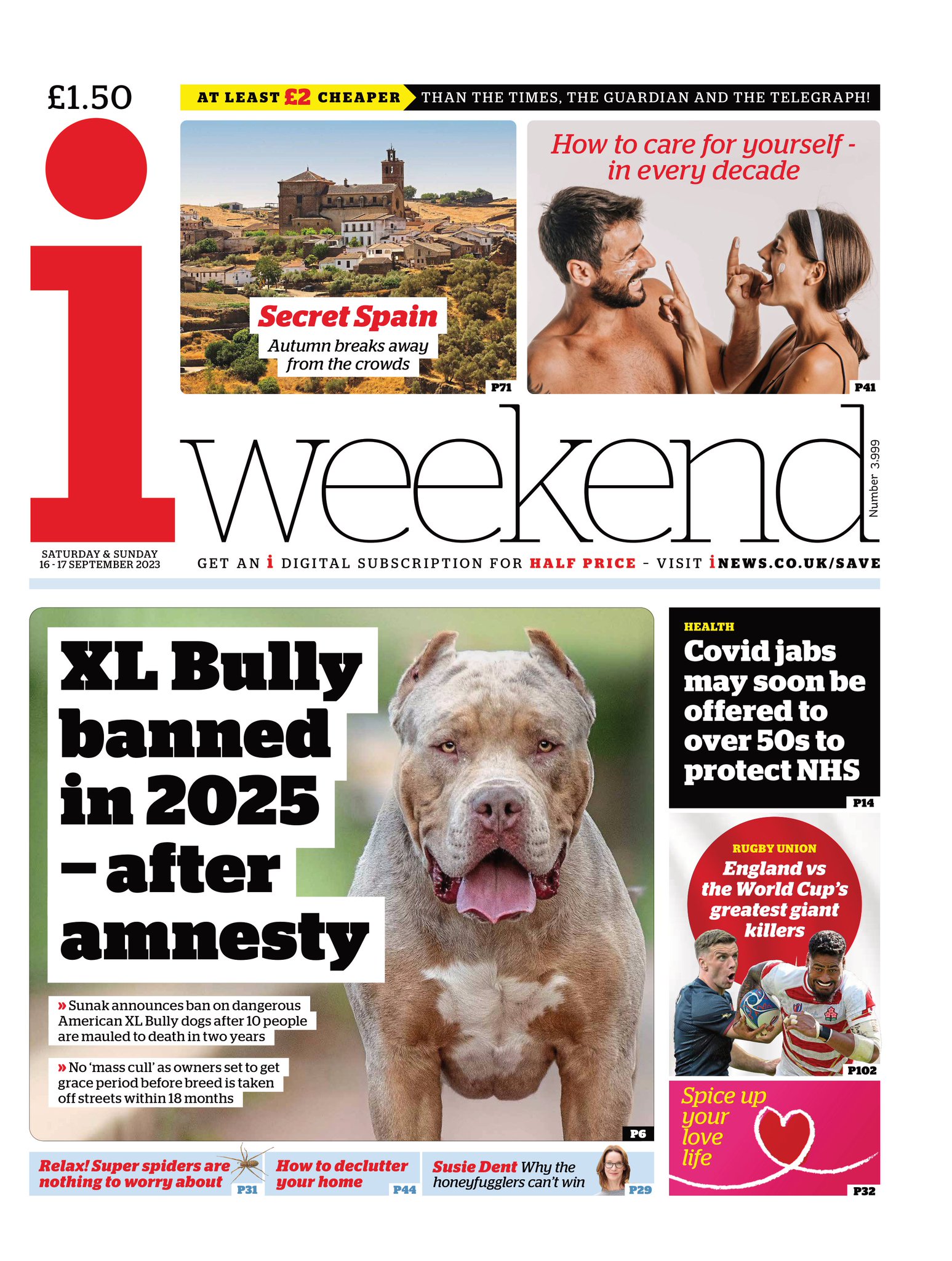 The i paper reports on Rishi Sunak’s declaration to prohibit American XL bully dogs by 2025.