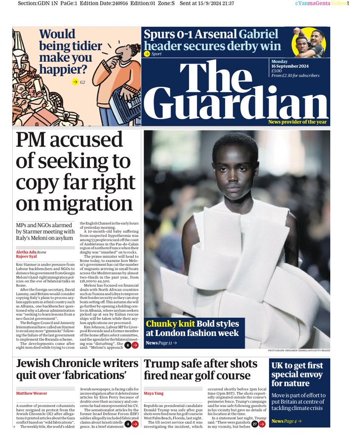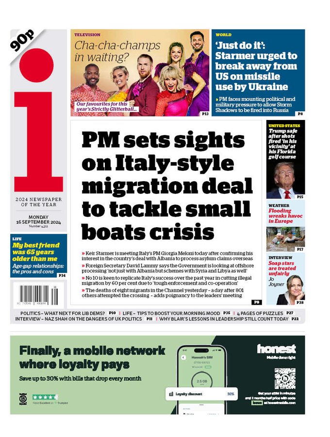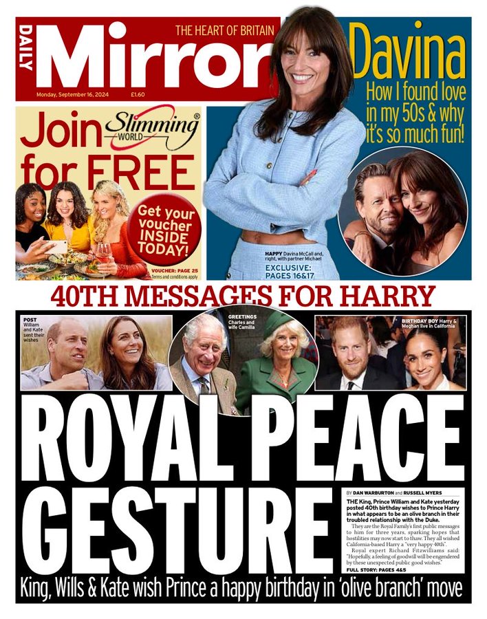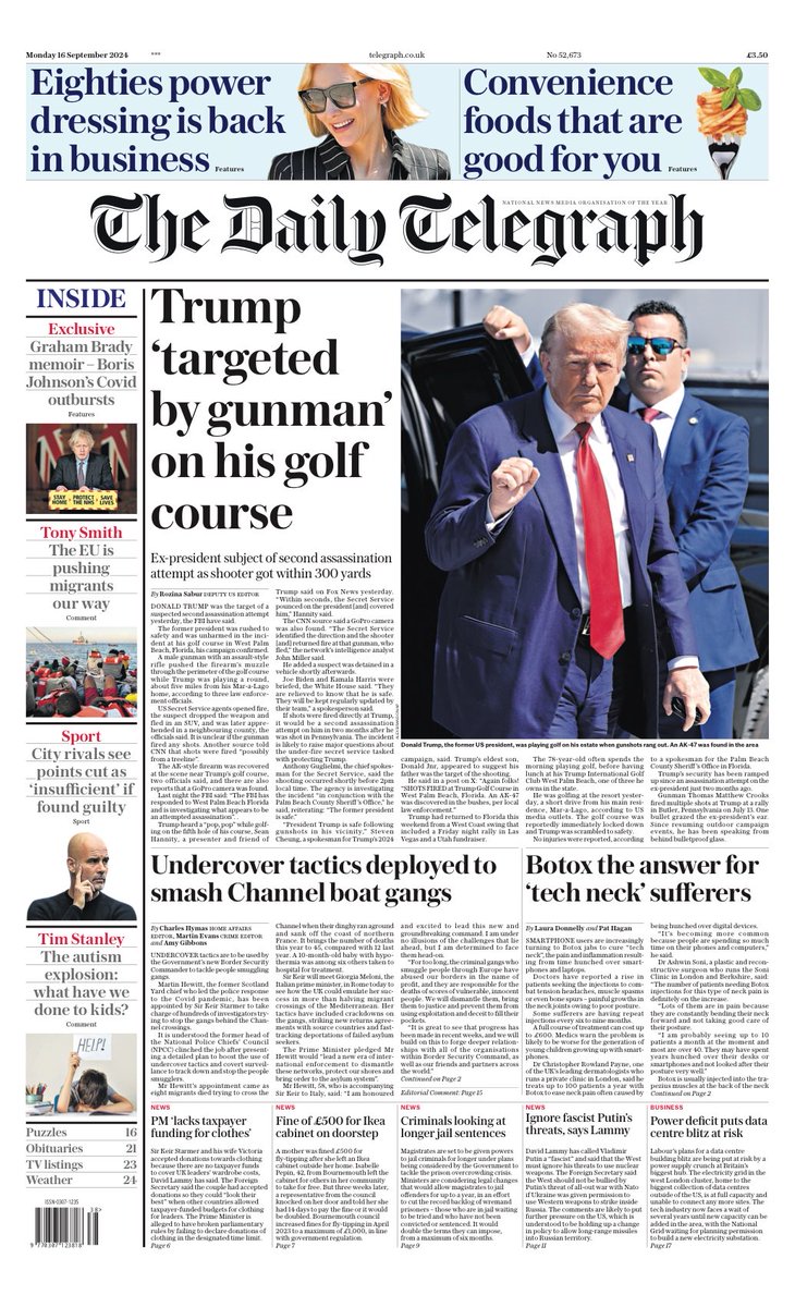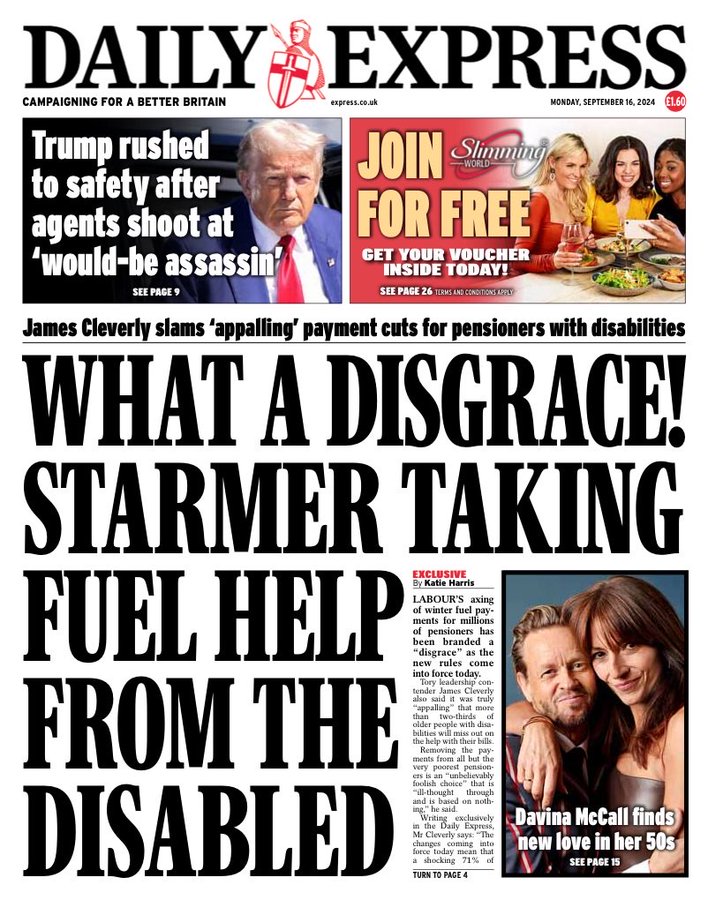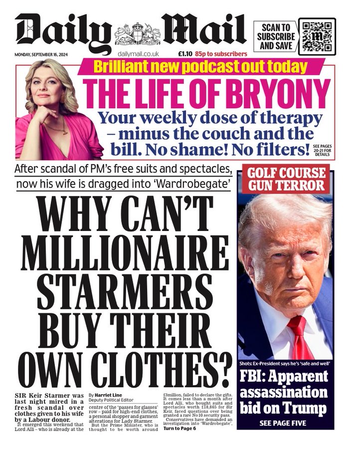 Daily Mail Front Page 16th of September 2024