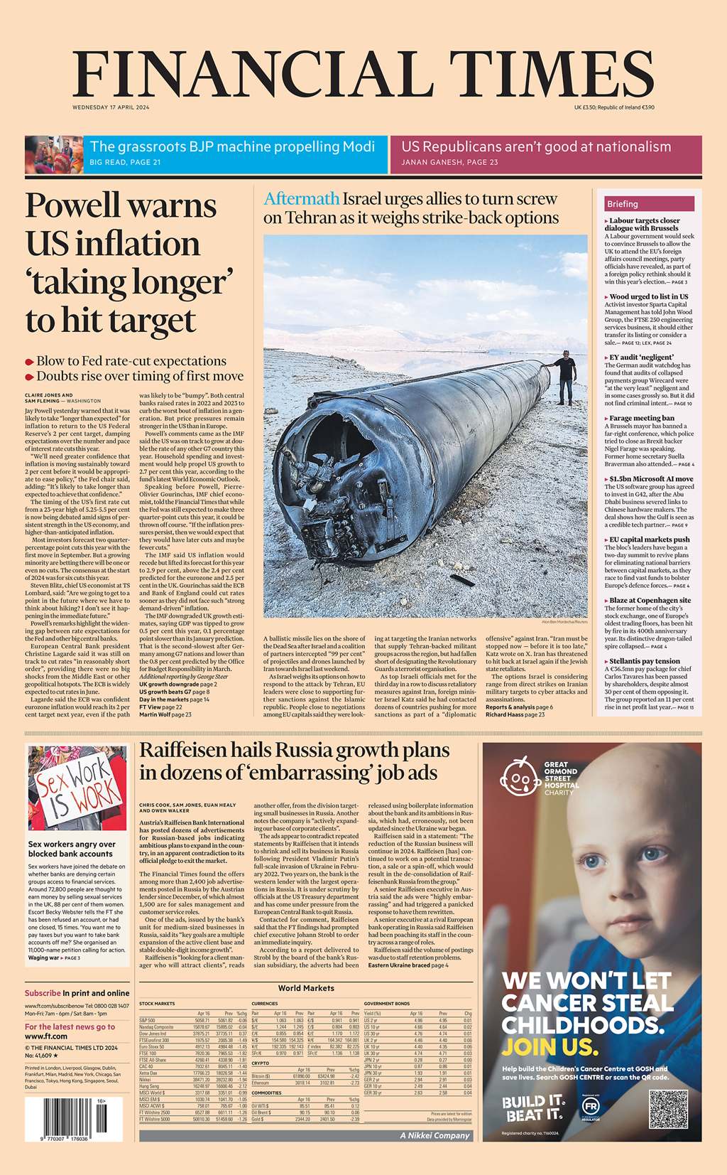 The Financial Times reports on the US Federal Reserve Chairman’s prediction of a delayed return to the 2% inflation target.