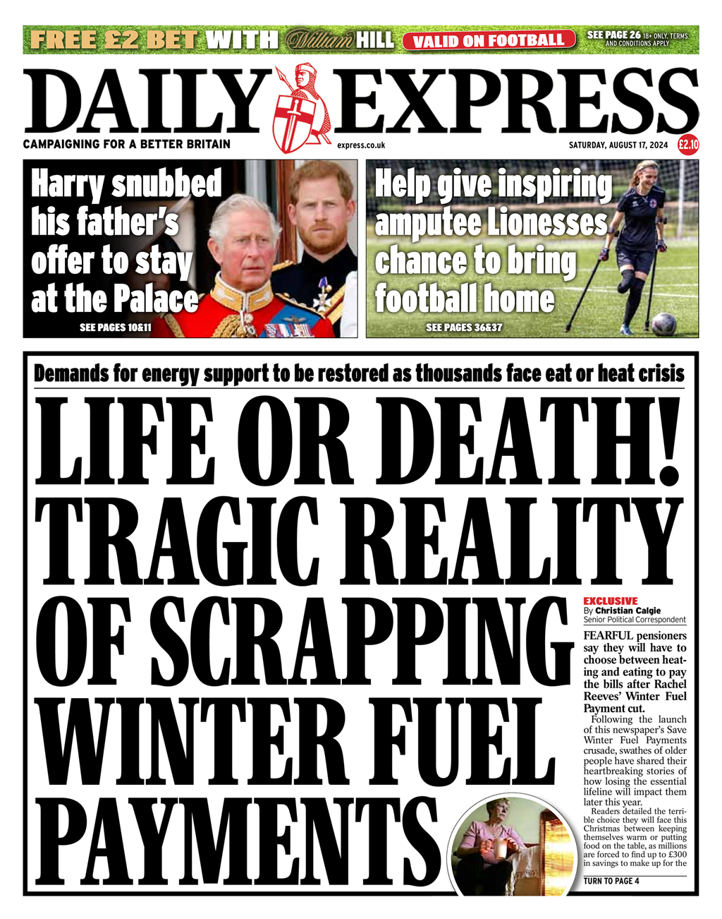 Pensioners have expressed to the Daily Express that they may face a choice between heating and eating after Chancellor Rachel Reeves eliminated winter fuel payments for some.