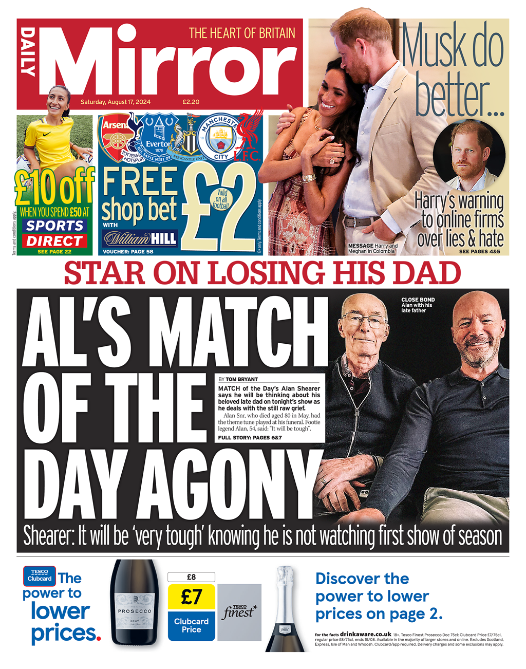 Alan Shearer expressed that it will be challenging knowing his late father won’t be watching the first football show of the season, reports the Daily Mirror.