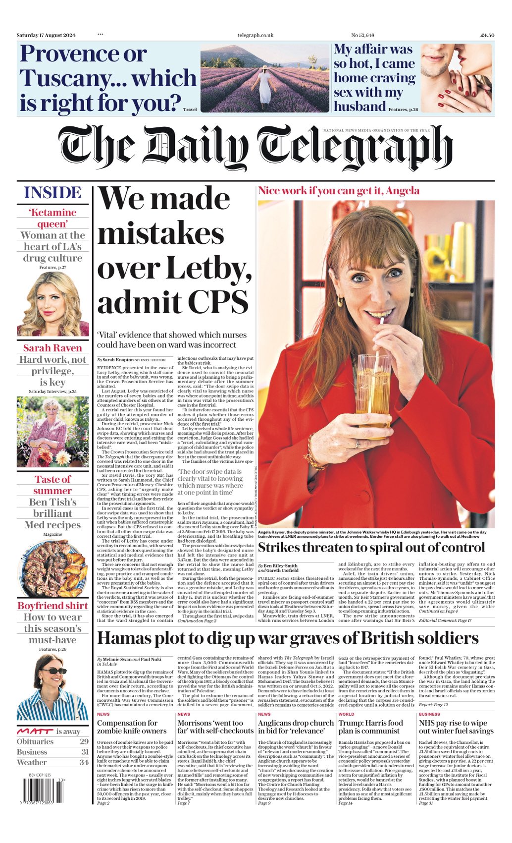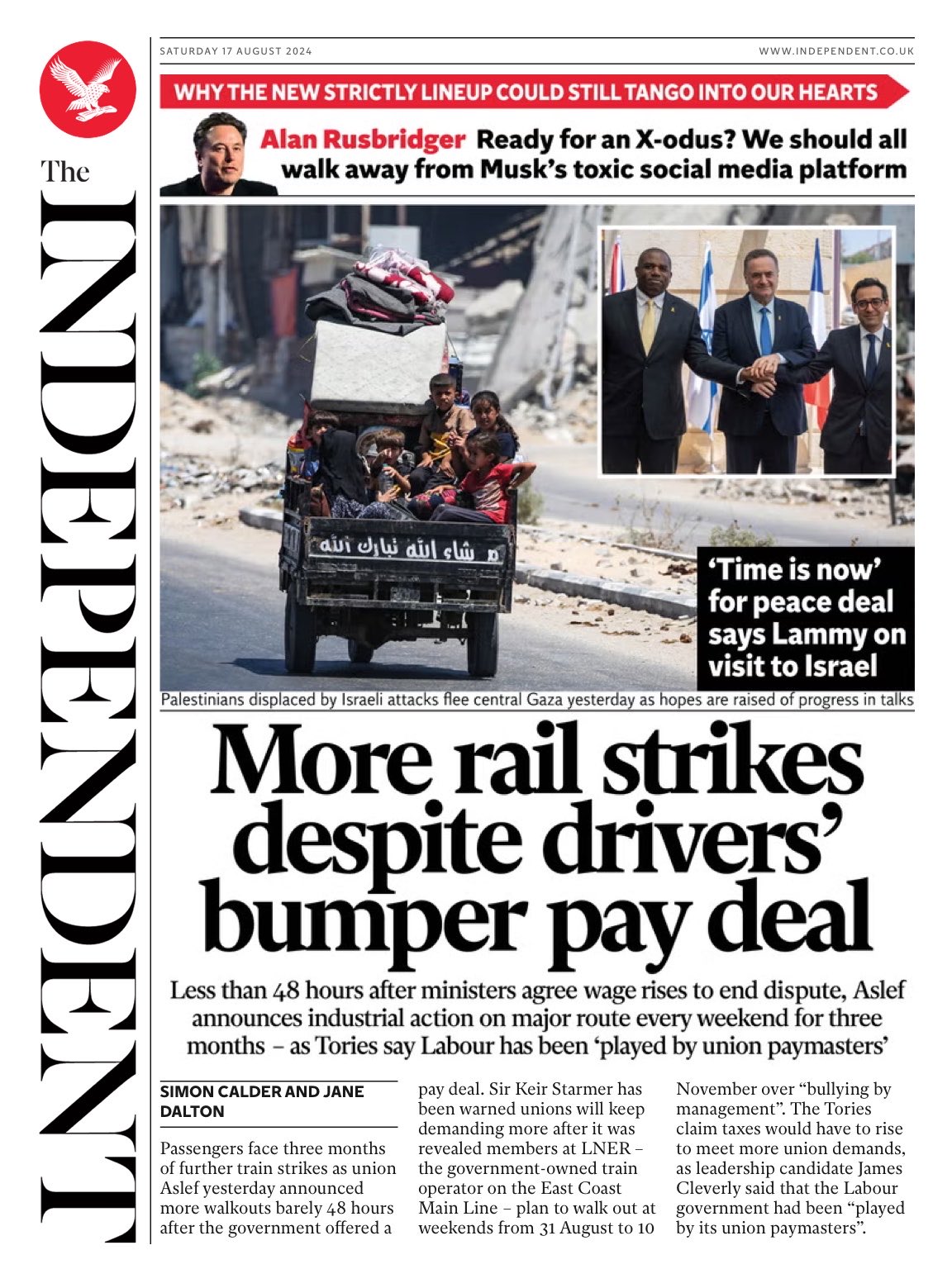 The Daily Mail reports that Sir Keir Starmer faces criticism for allegedly losing control over unions following Aslef’s announcement of 22 days of train driver strikes.