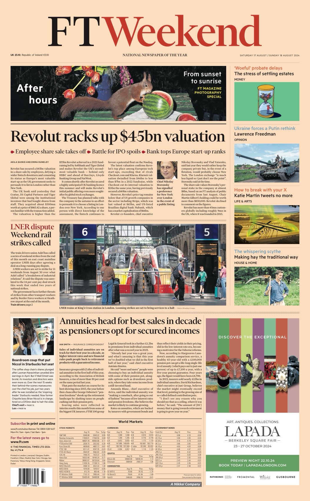 Revolut has secured a $45bn valuation following a share sale by employees, making it the UK’s most valuable start-up and enhancing its stance as Europe’s leading fintech company.